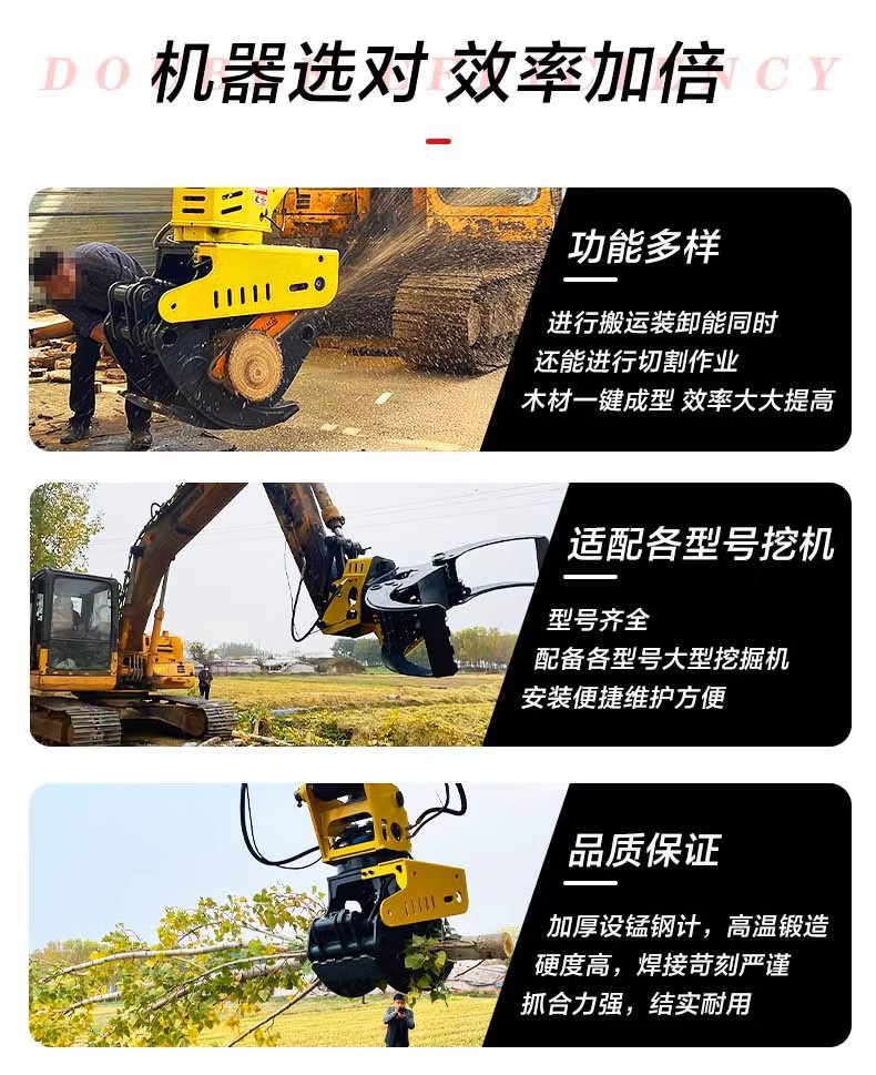 Excavadora de agarre, cortadora de madera hidráulica, cortadora de madera, cortadora de madera, sierra de agarre giratoria