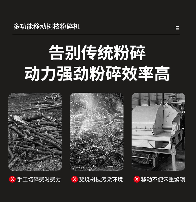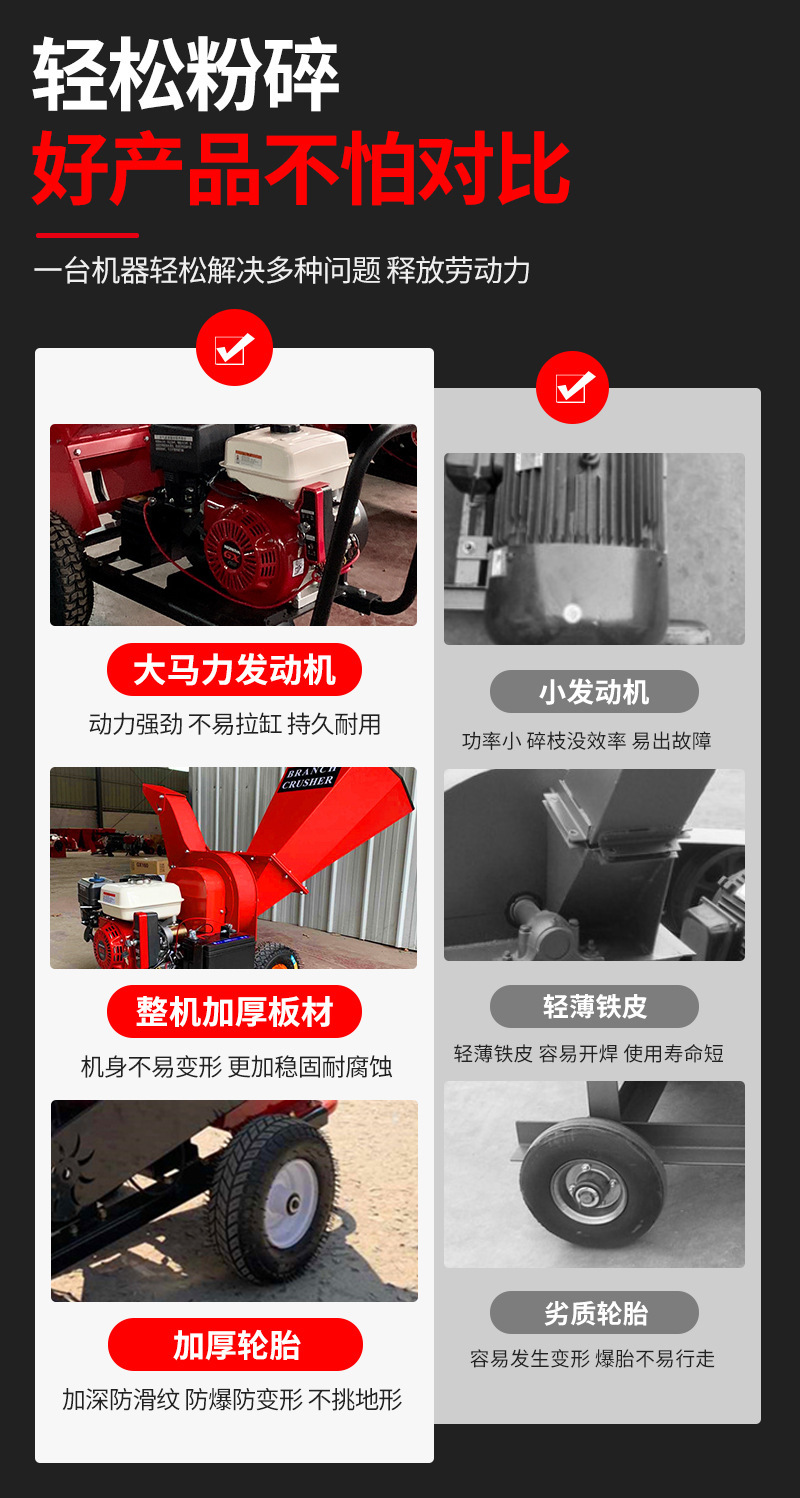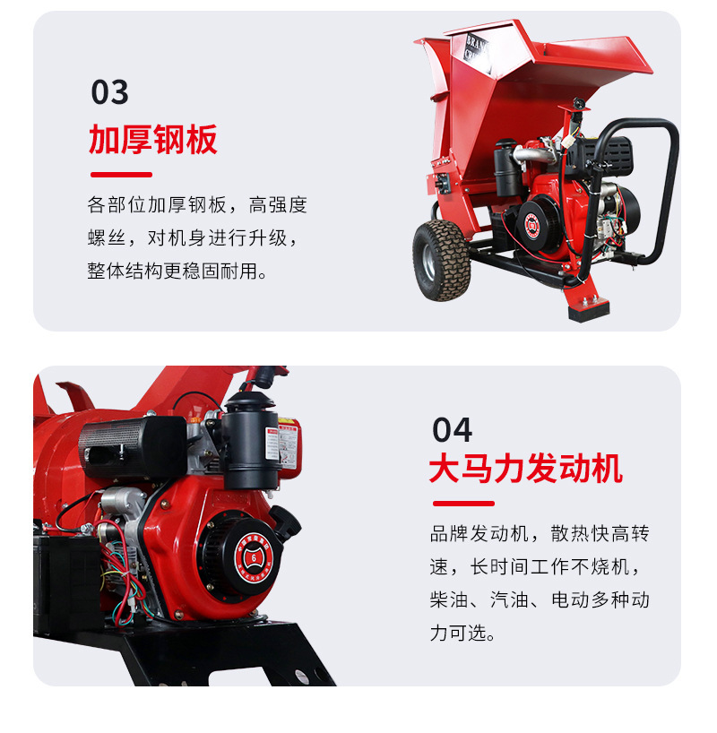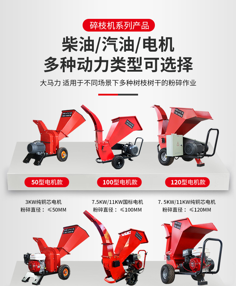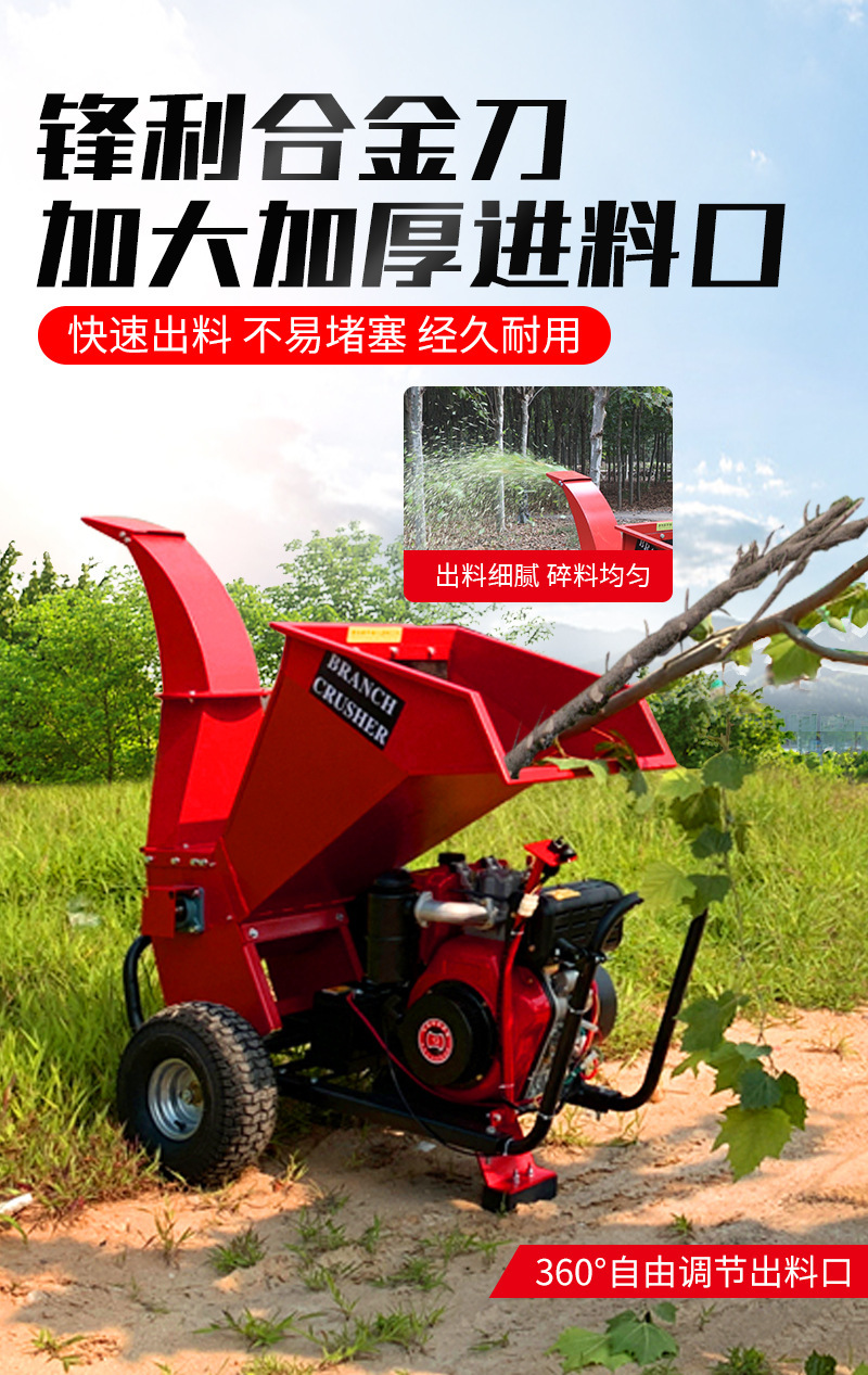 pequeño tipo móvil de rama de uva de árboles frutales de madera hierba trituradora de ramas de árboles domésticos