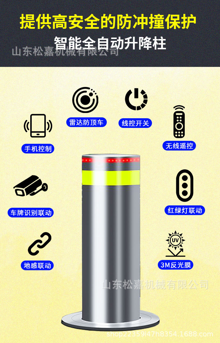 Escuela de control remoto inteligente pila de carretera de acero inoxidable cuadrada columna de elevación hidráulica automática columna de prevención de colisiones eléctrica