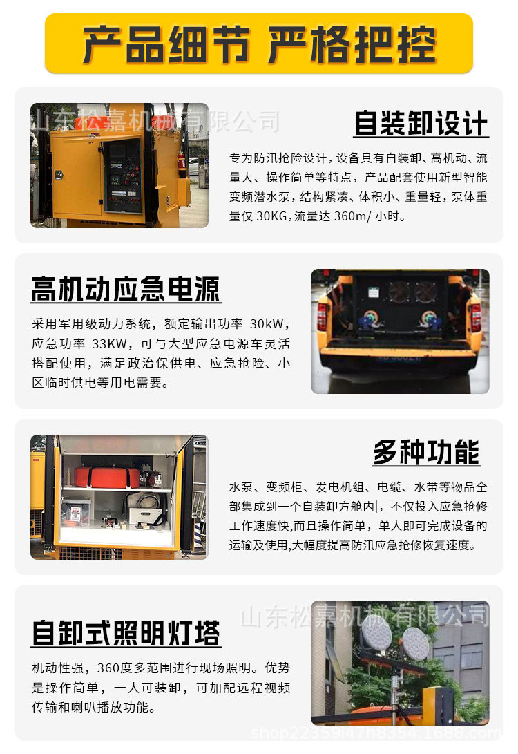 Control de inundaciones autocarga y descarga de drenaje de agua cabina cuadrada de emergencia elevación automática generador de electricidad iluminación bomba móvil bomba de agua de gran caudal