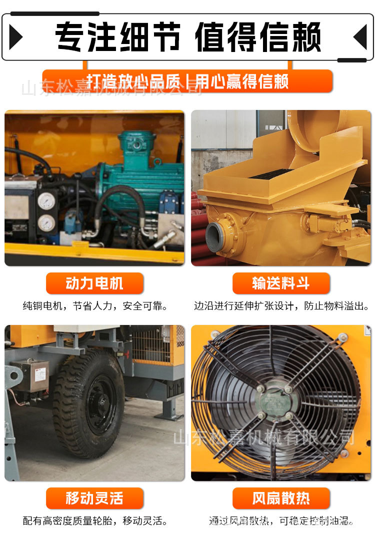 Bomba de transporte de hormigón diesel eléctrico bomba de transporte de hormigón de estructura secundaria bomba hidráulica de suelo de piedra fina de gran columna