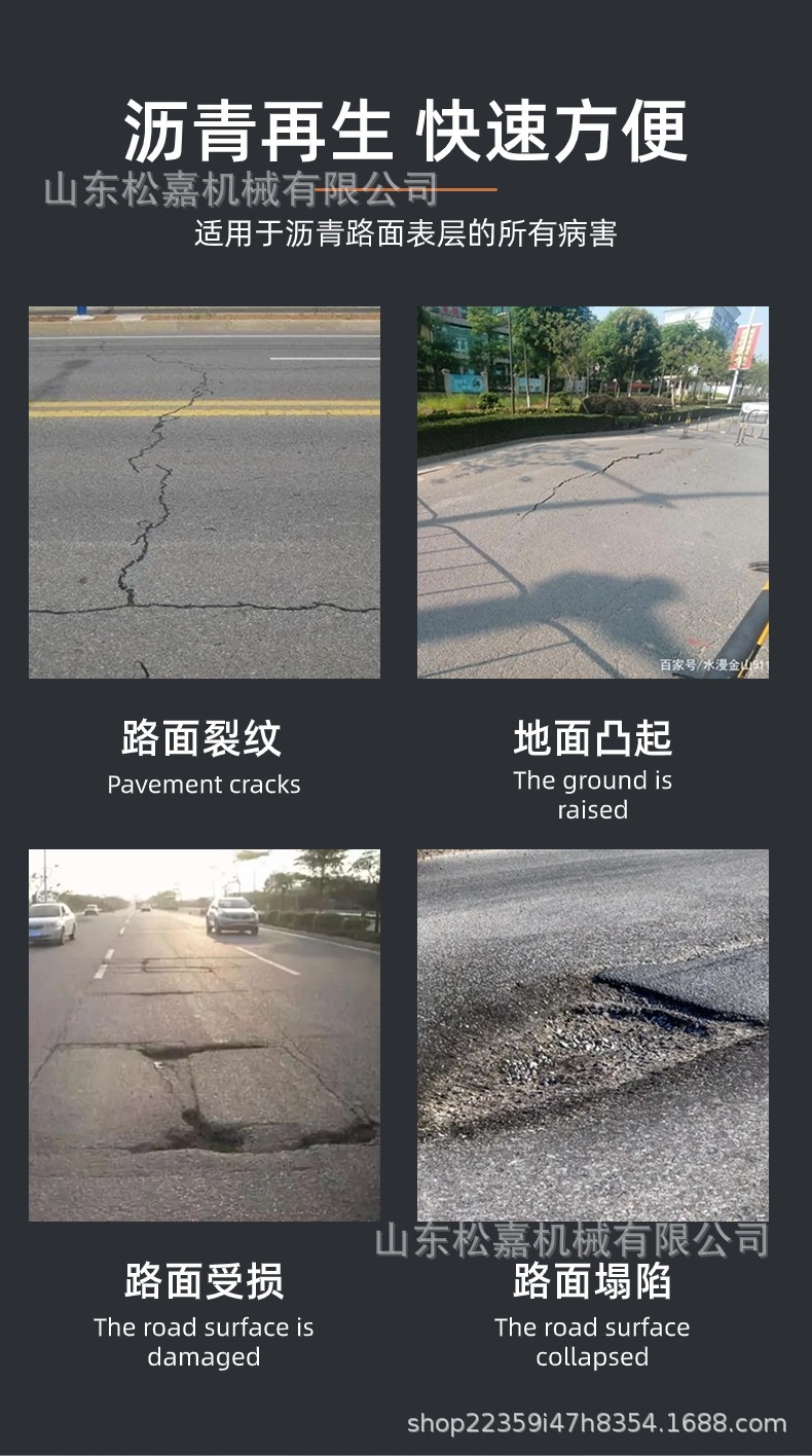 máquina de fusión infrarroja en caliente de pavimento de asfalto carretera agrietamiento pozo calentador tipo empuje manual máquina de reparación de pozo de regeneración térmica