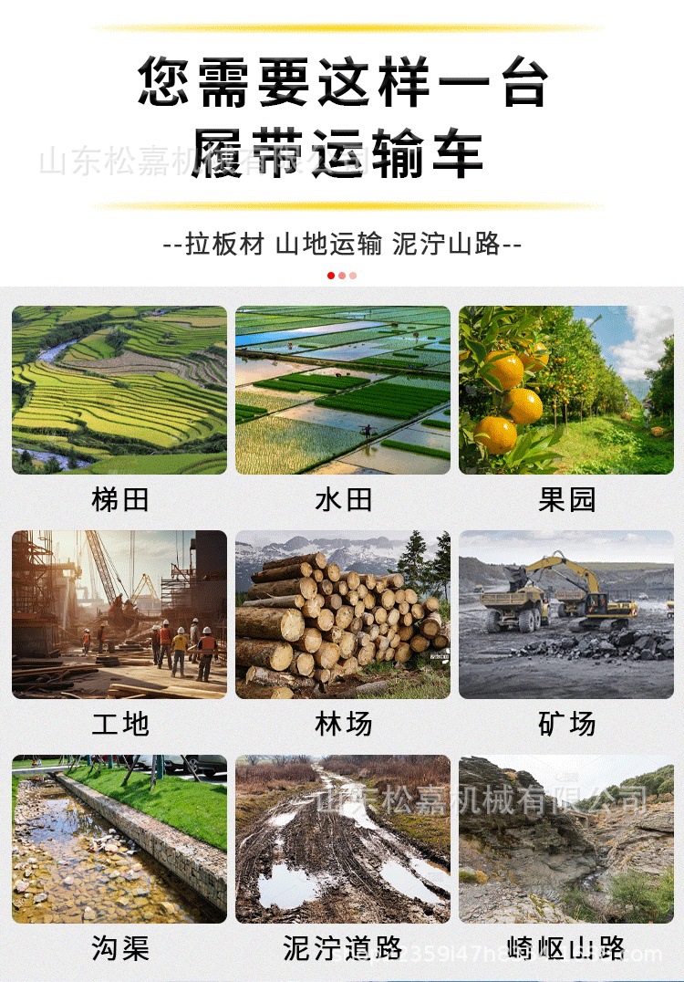 Vehículo de transporte de orugas de montaña de varios tipos de tigre de montaña huerto tracción de sandía invernadero ingeniería agrícola camión de volcado pequeño
