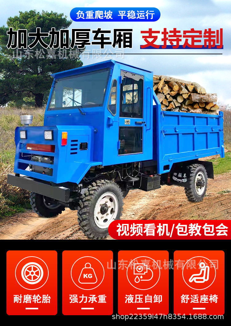 Granja jardín de transporte de transporte de camión agrícola de cuatro tracciones, camión de descarga de tierra de cuatro ruedas agrícola de cuatro no como un remolque