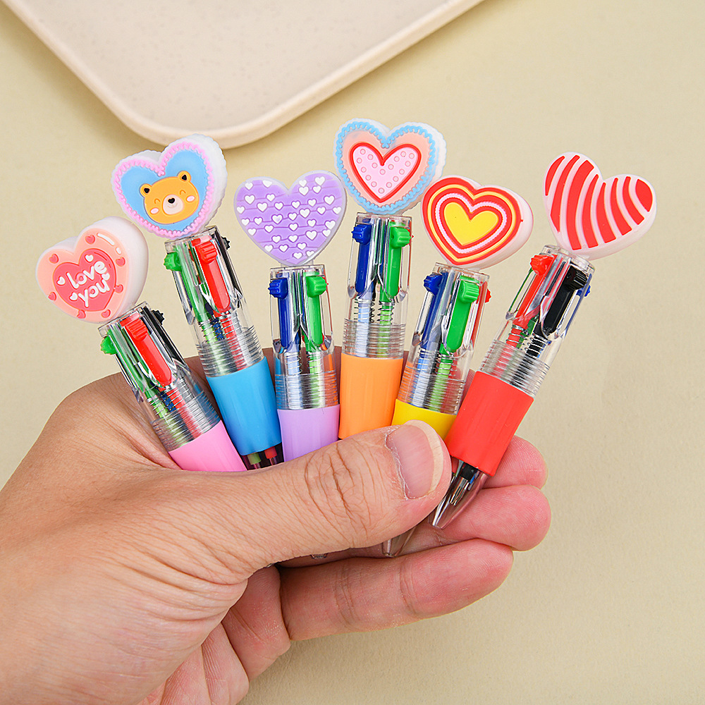 Día de San Valentín creativo transfronterizo en forma de corazón bolígrafo de cuatro colores dibujos animados amor bolígrafo de color prensa multicolor bolígrafo al por mayor