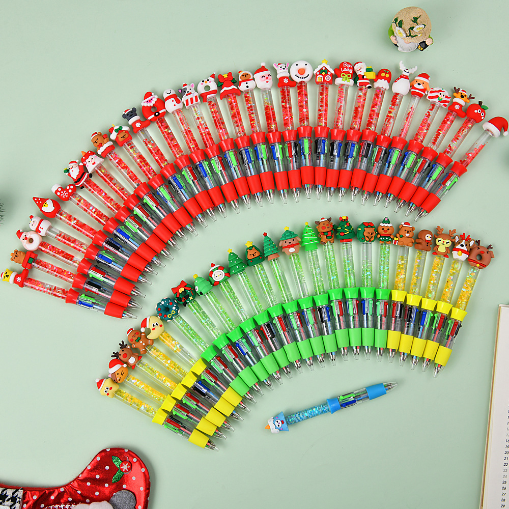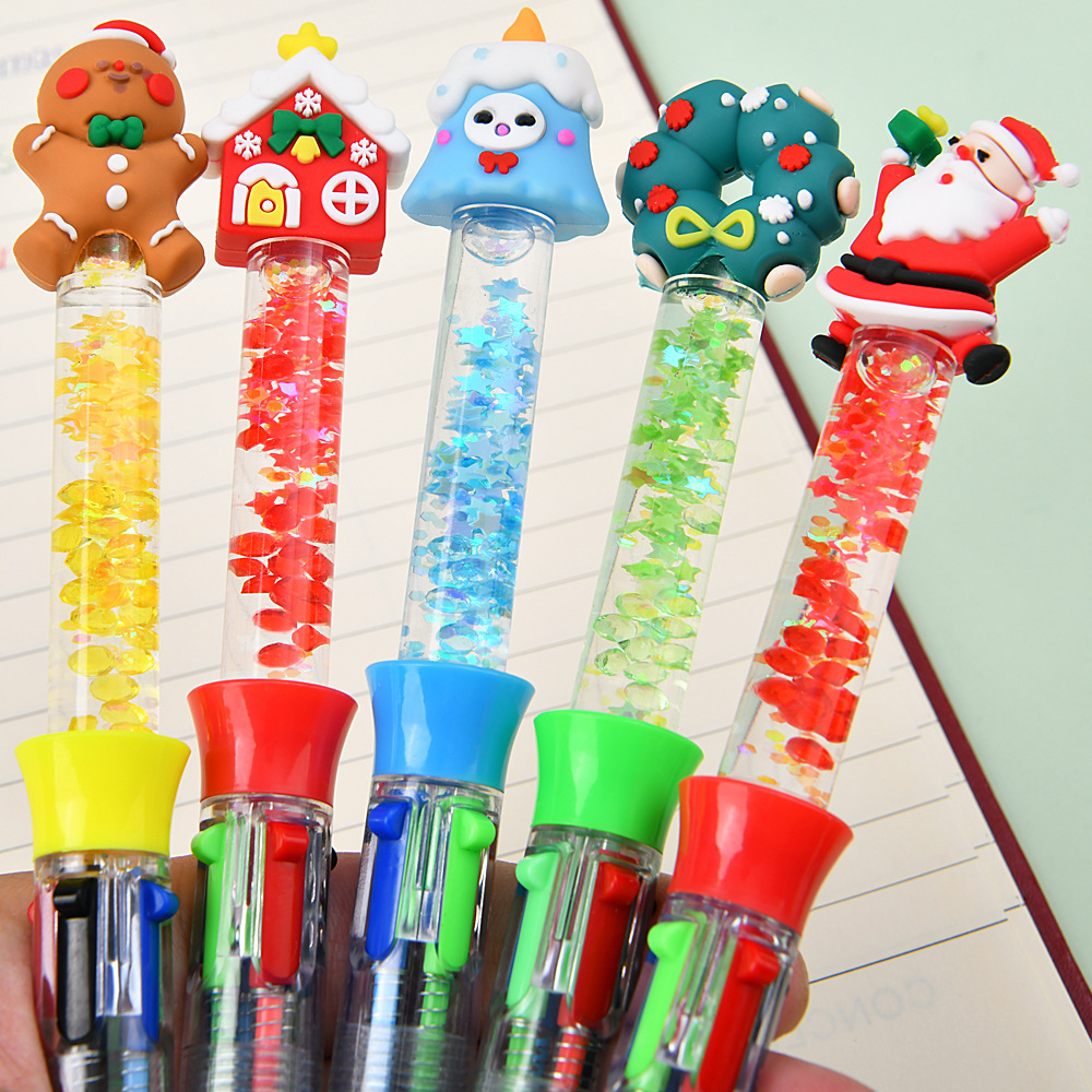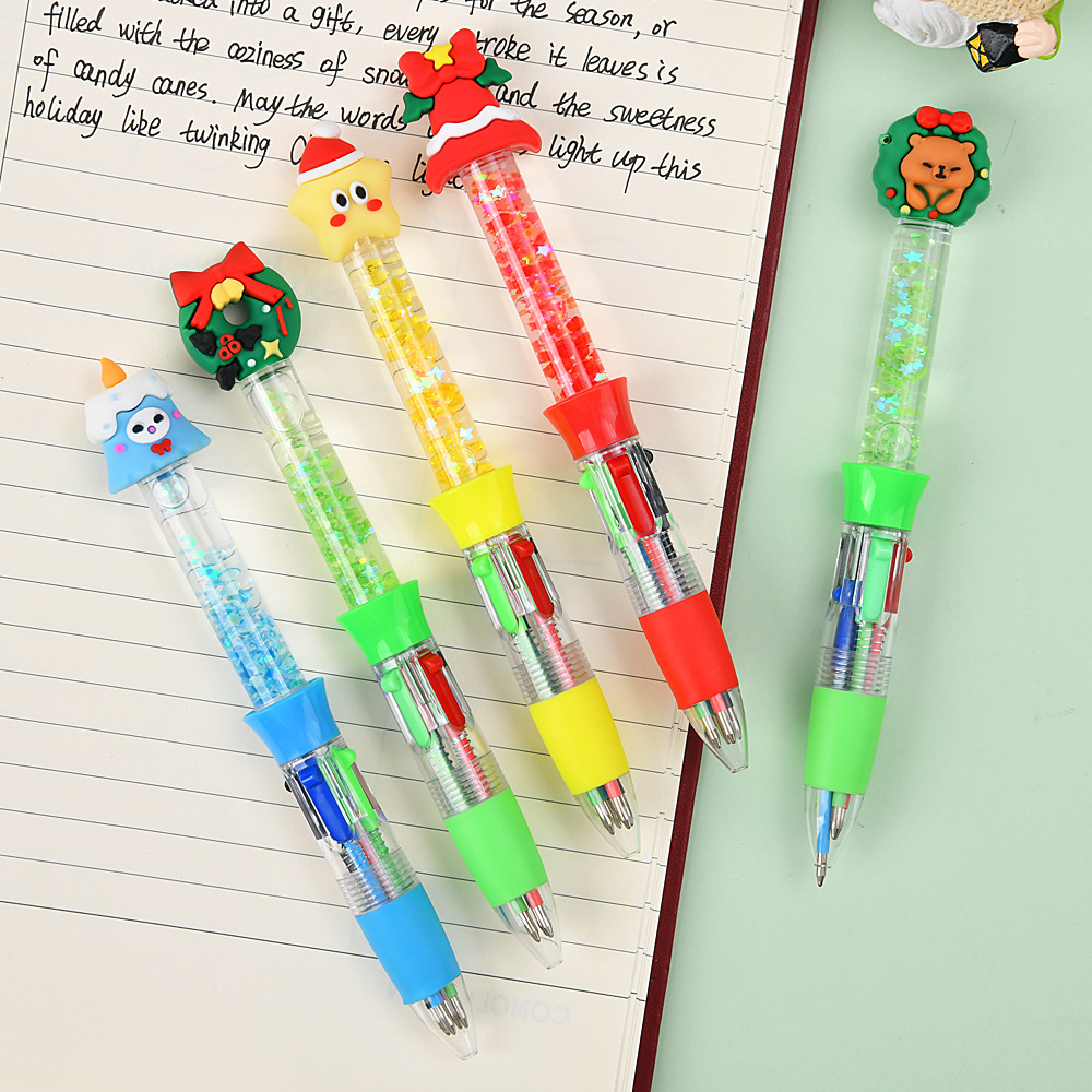 Navidad transfronteriza creativa encantadora dibujos animados de arena flotante mini bolígrafo de cuatro colores estudiantes papelería regalo al por mayor