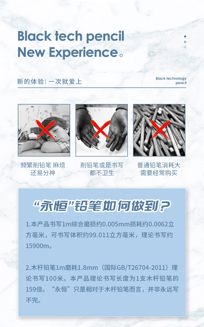 Tecnología negra creativa sin raspado lápiz de color eterno lápiz de los estudiantes no es fácil de romper lápiz HB al por mayor