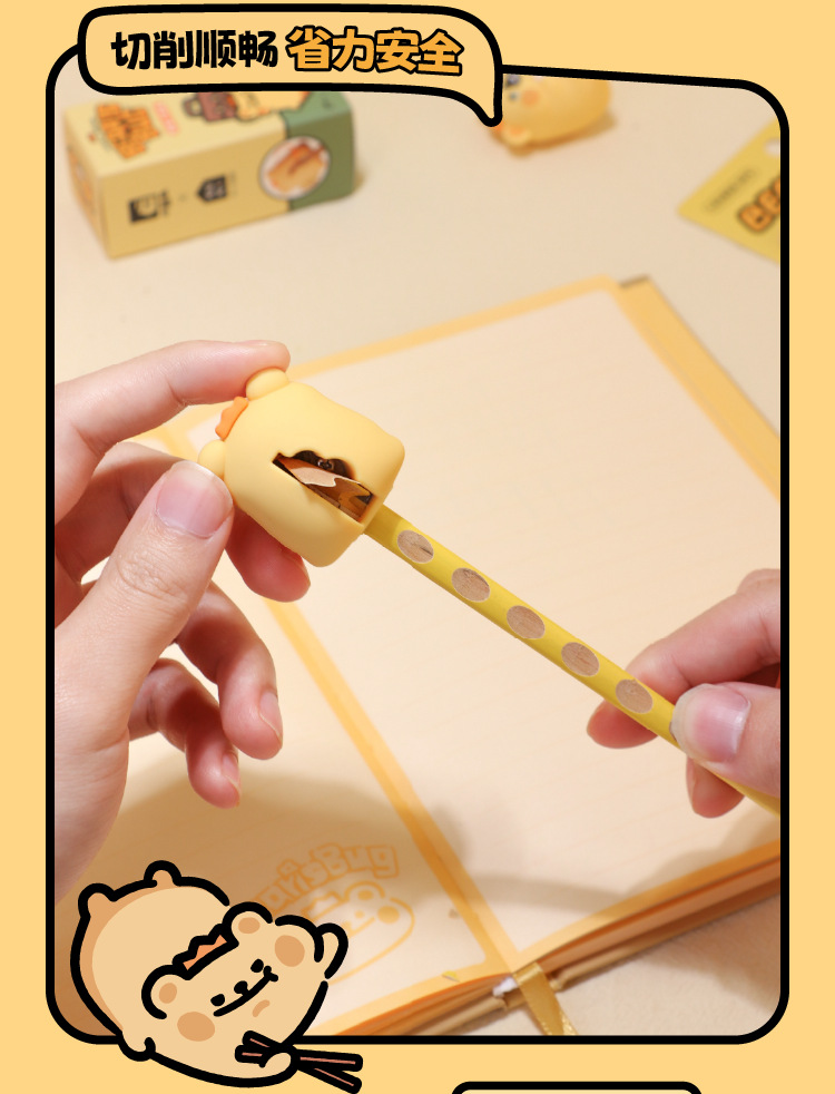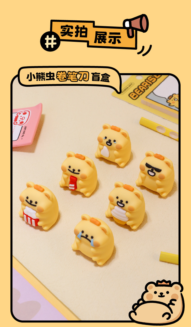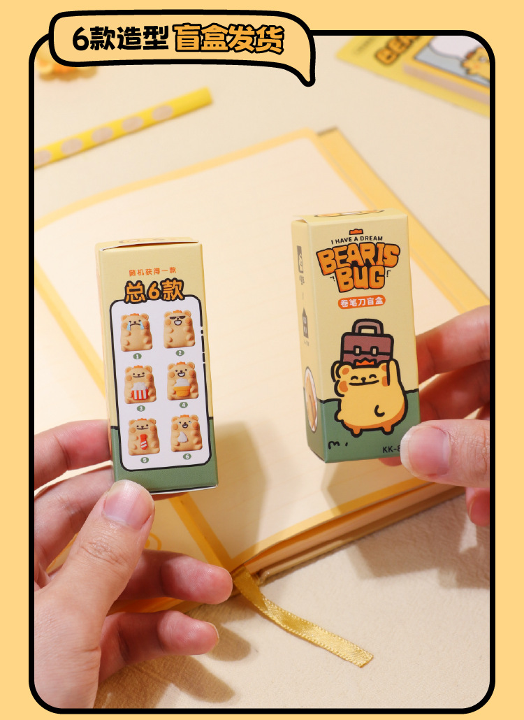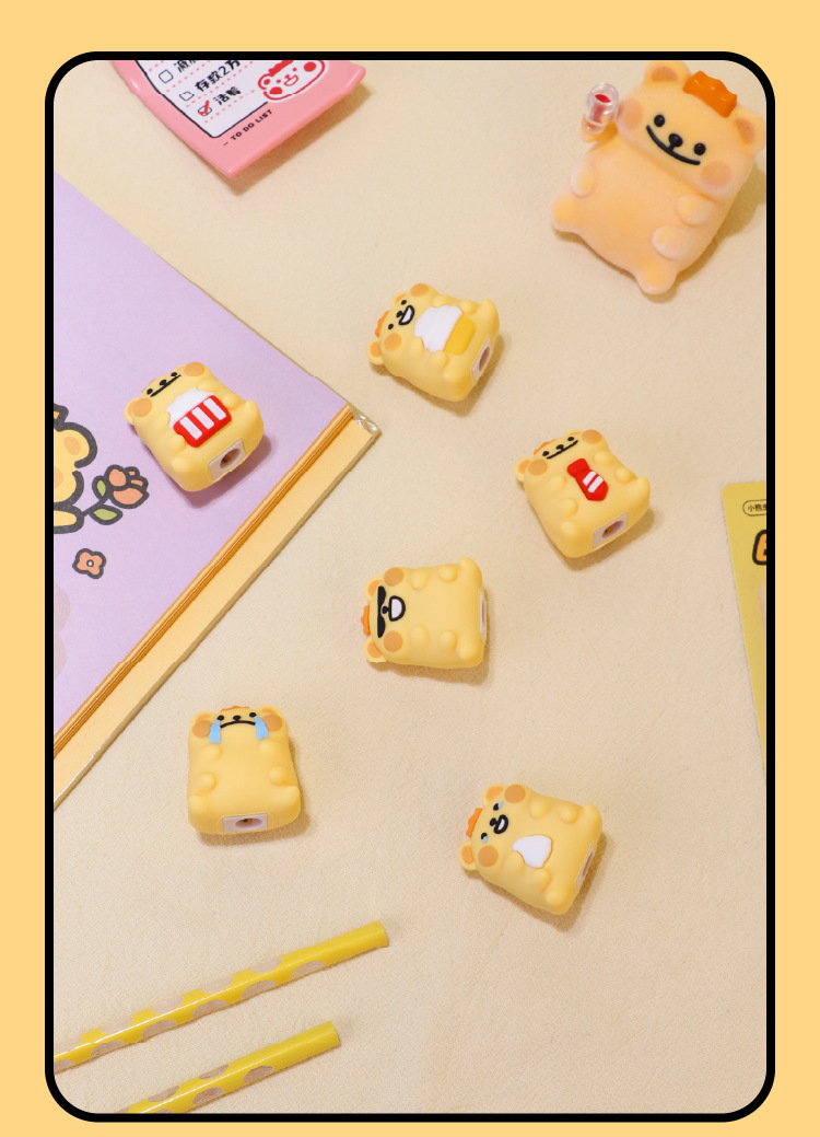 KUKI Kuki pequeño oso cuchillo de lápiz caja ciega afilador de lápiz auténtico lindo creativo muñeca especial para estudiantes de primaria