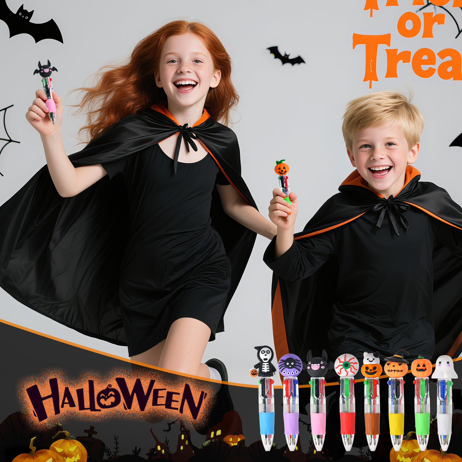 Serie de Halloween Bolígrafo de prensa de cuatro colores Mini bolígrafo lindo bolígrafo corto fácil de llevar Bolígrafo multicolor de la cuenta del estudiante