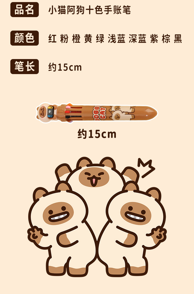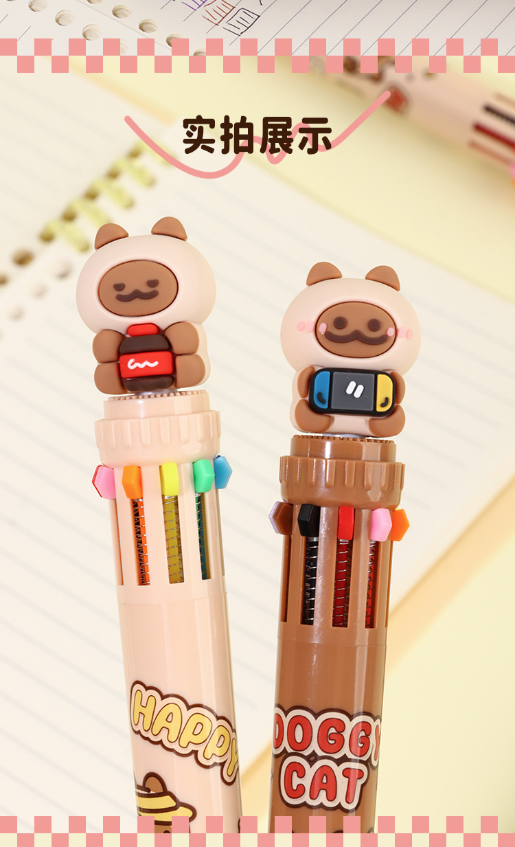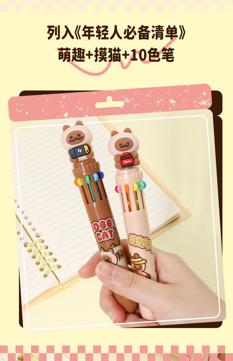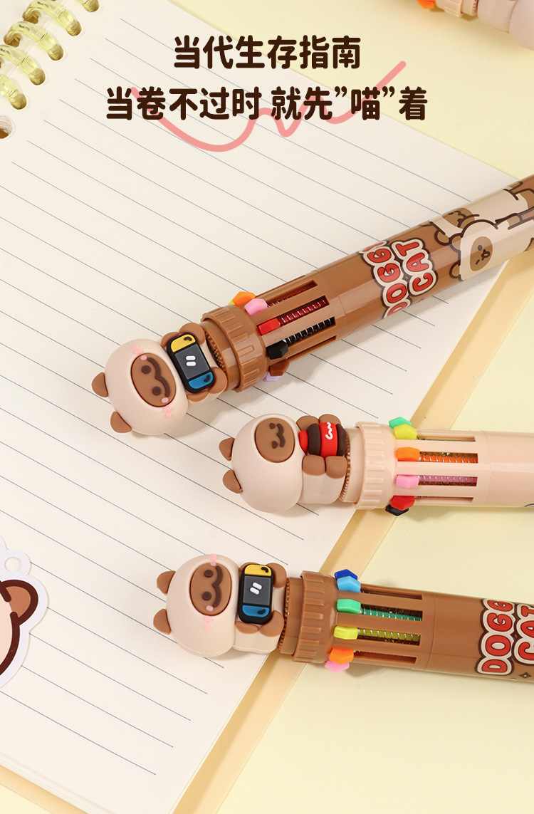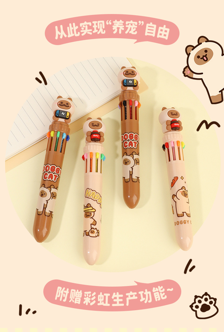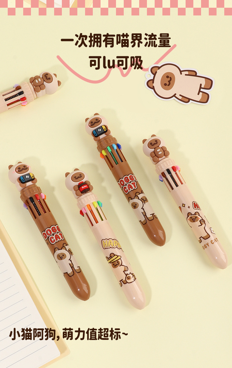 KUKI KOKI Gato doméstico, perro, bolígrafo multicolor, bolígrafo de bolas, dibujos animados, bolígrafo de muñeca para estudiantes