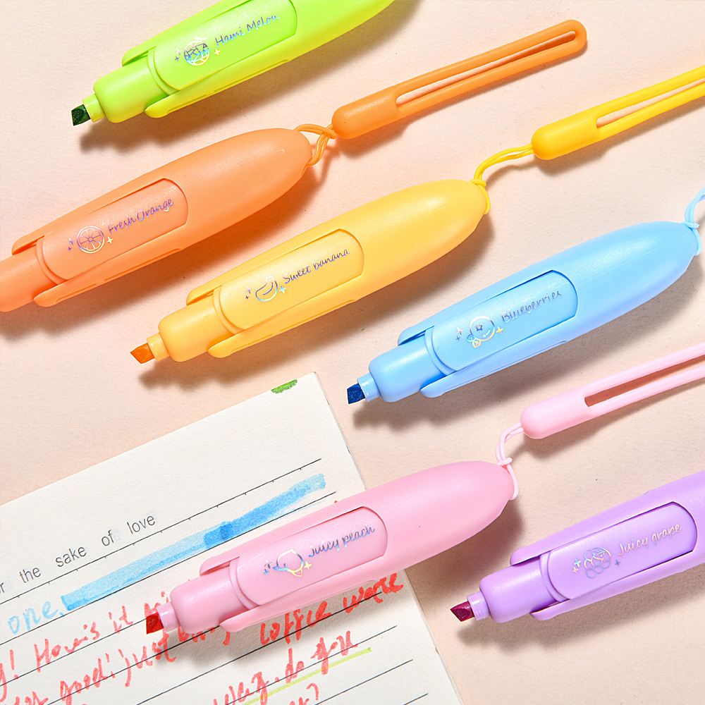 Exclusiva transfronteriza para resaltadores de bolsillo perfumados, los estudiantes usan bolígrafos para evitar que se quiten las tapas de los bolígrafos, marcadores de mano, puntos clave