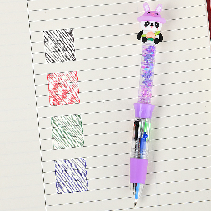 Nuevos dibujos animados creativos de arena flotante de cuatro colores bolígrafo adorable bolígrafo de mano pulsar bolígrafo de color estudiantes papelería al por mayor
