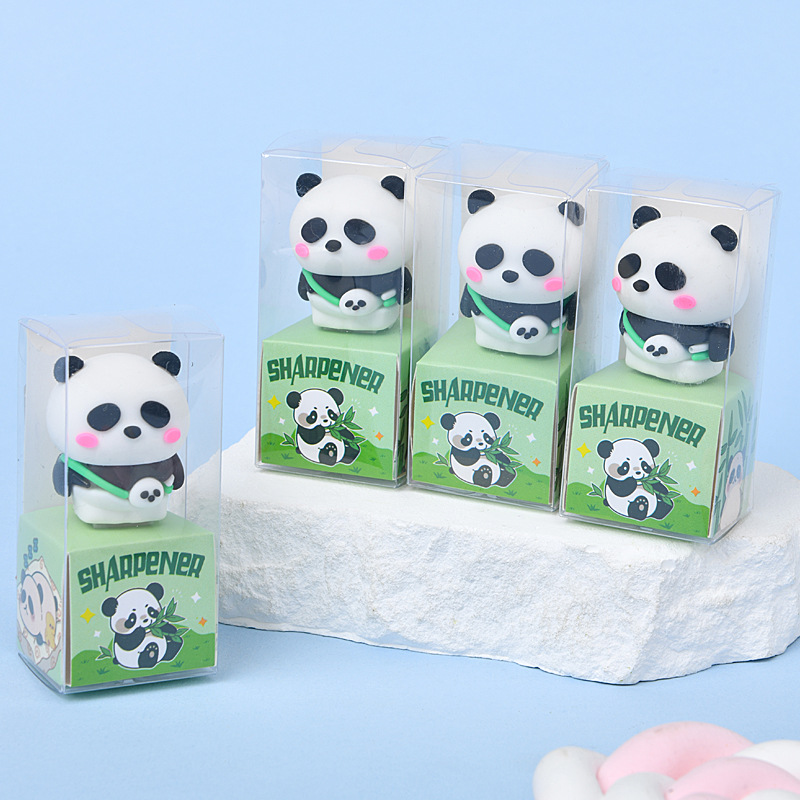 Creativo lindo pequeño panda dibujos animados estudiantes bolígrafo afilador lápiz lápiz cortador de papelería premios al por mayor