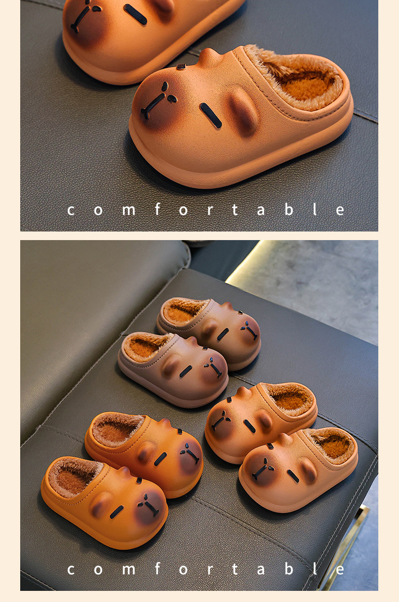 Capibara otoño y invierno zapatillas de algodón para niños, niños, niñas y niñas, calentamiento, terciopelo impermeable, zapatos de algodón para niños mayores en el hogar.