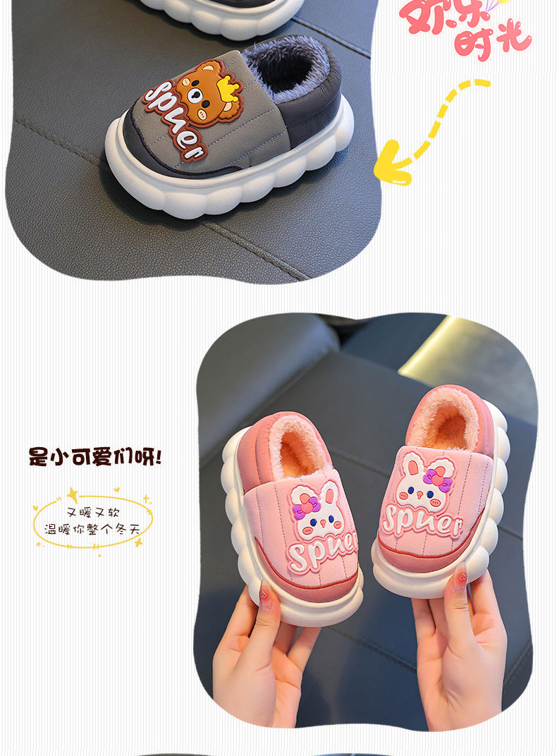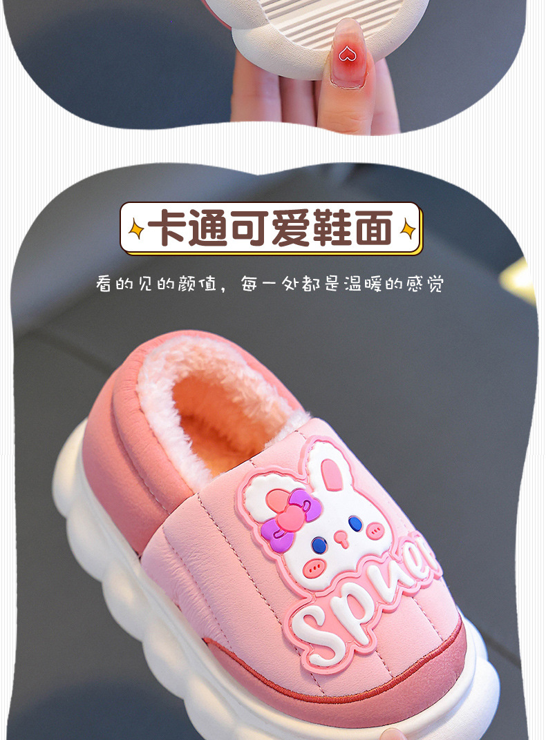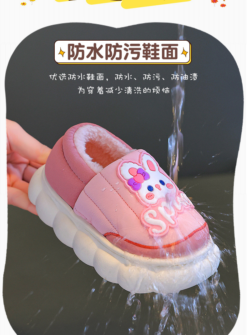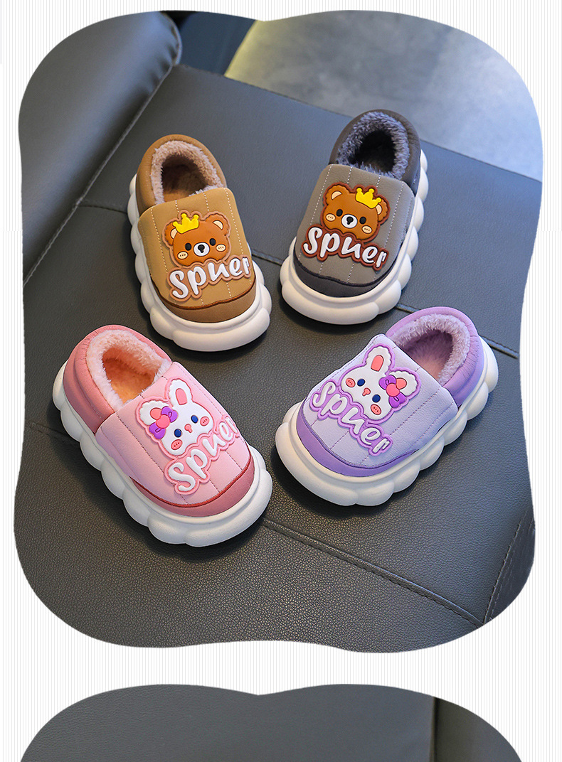 Otoño y invierno zapatillas de algodón para niños y niñas calientes de terciopelo PU impermeable y antideslizante bolsas de tacones de algodón para niños pequeños y medianos
