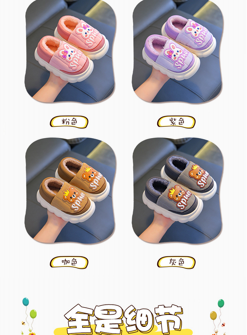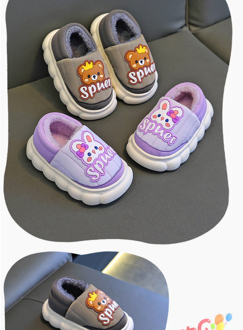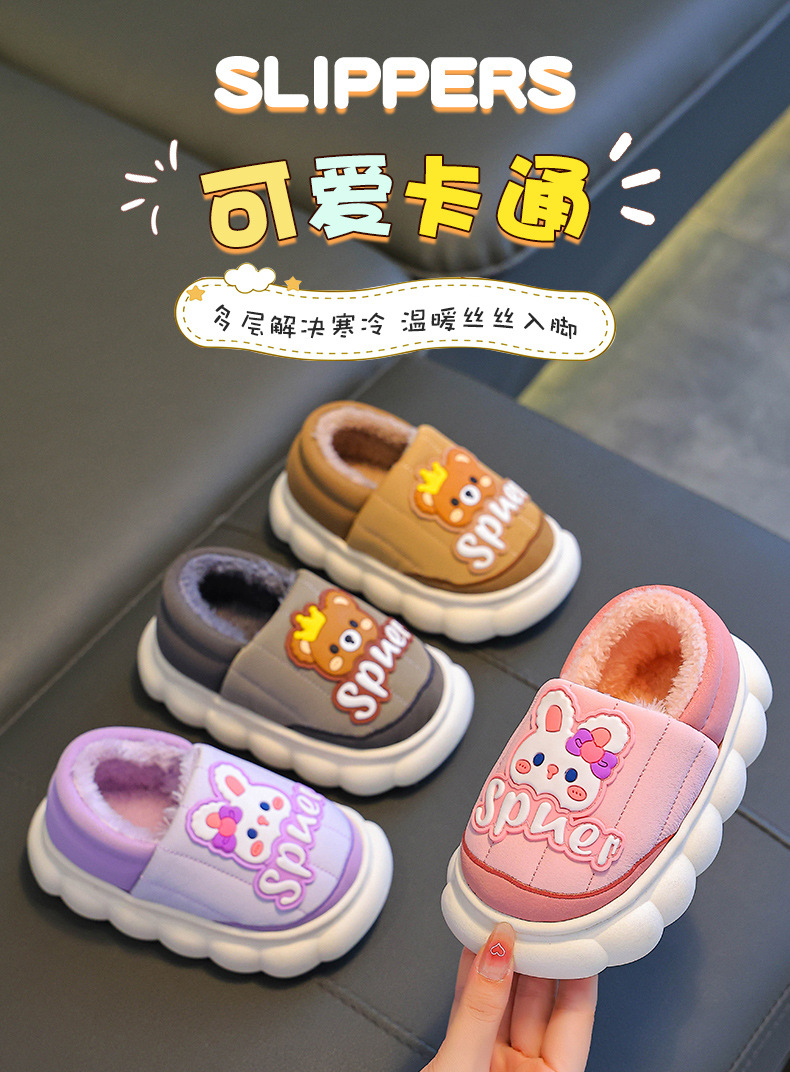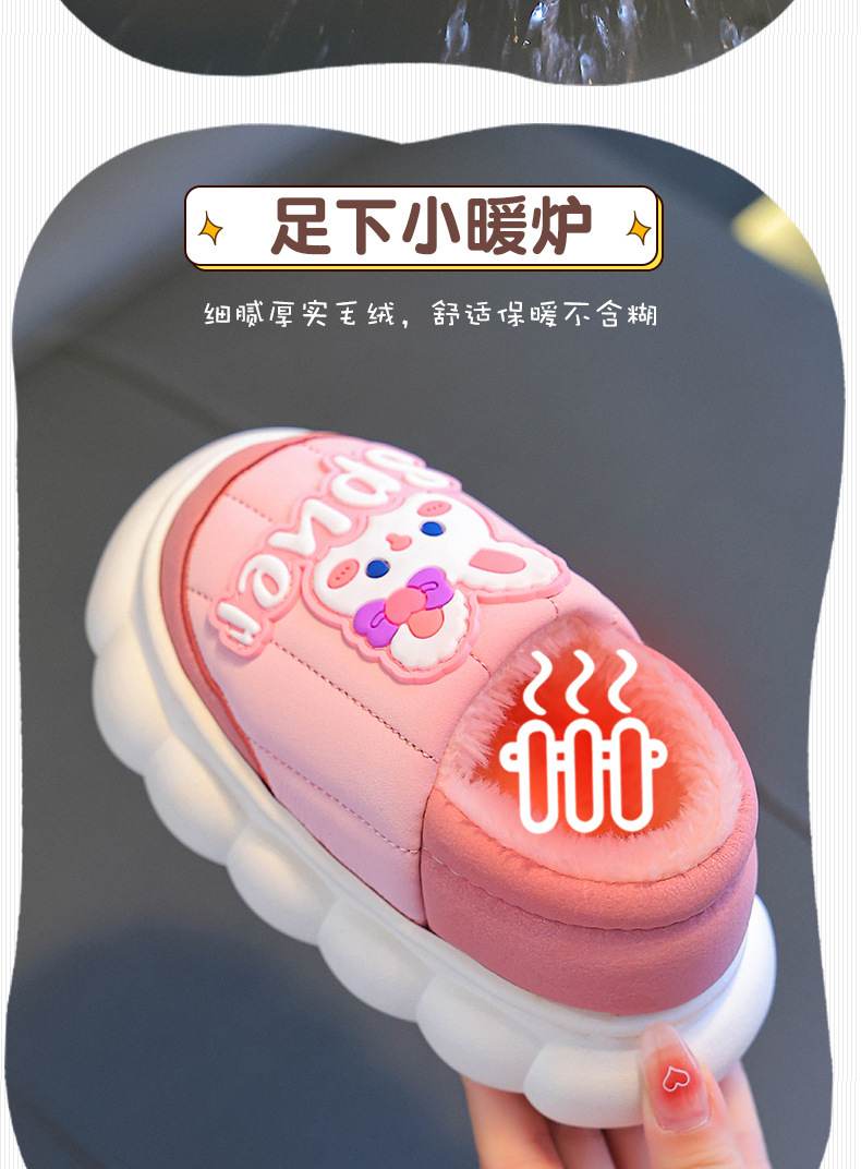 Otoño y invierno zapatillas de algodón para niños y niñas calientes de terciopelo PU impermeable y antideslizante bolsas de tacones de algodón para niños pequeños y medianos