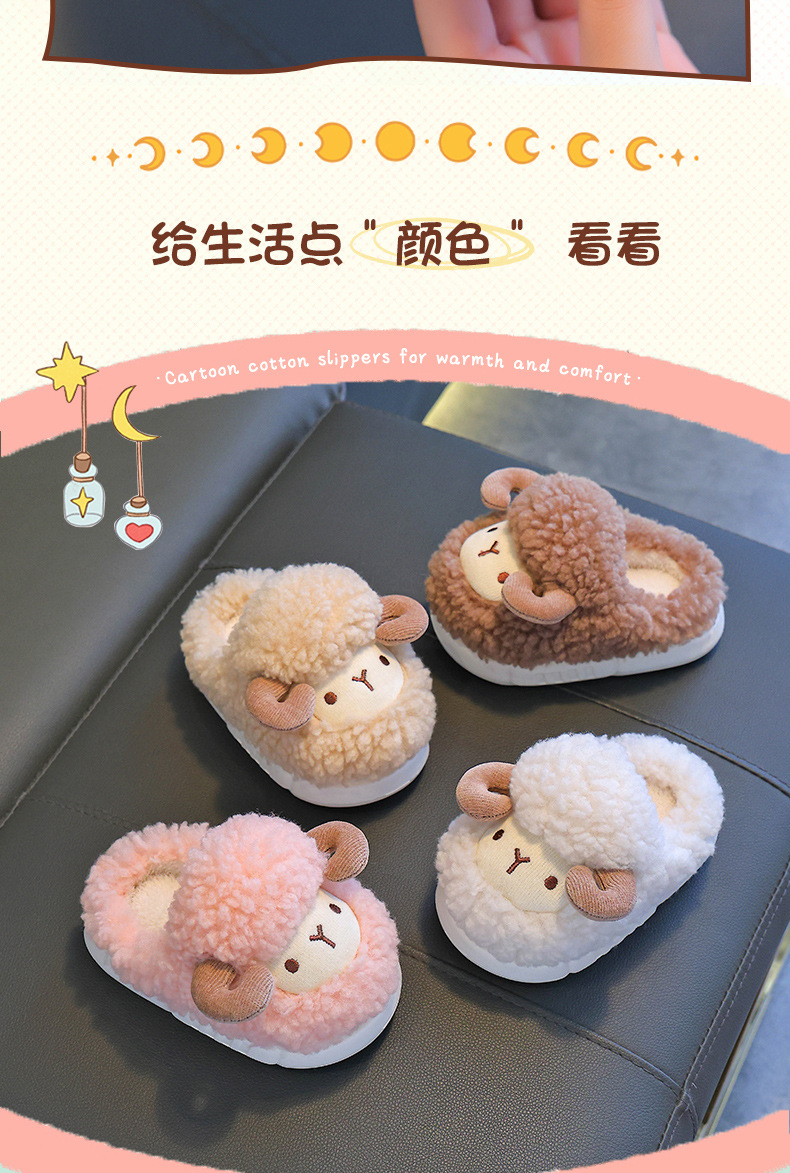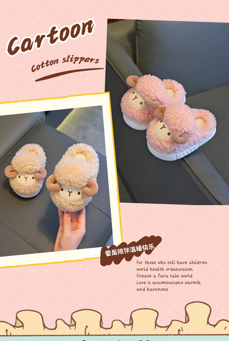 Zapatillas de algodón para niños de invierno para niños y niñas, zapatillas de algodón cálidas y antideslizantes para niños pequeños y medianos, lindas zapatillas de algodón de lana casera para bebés