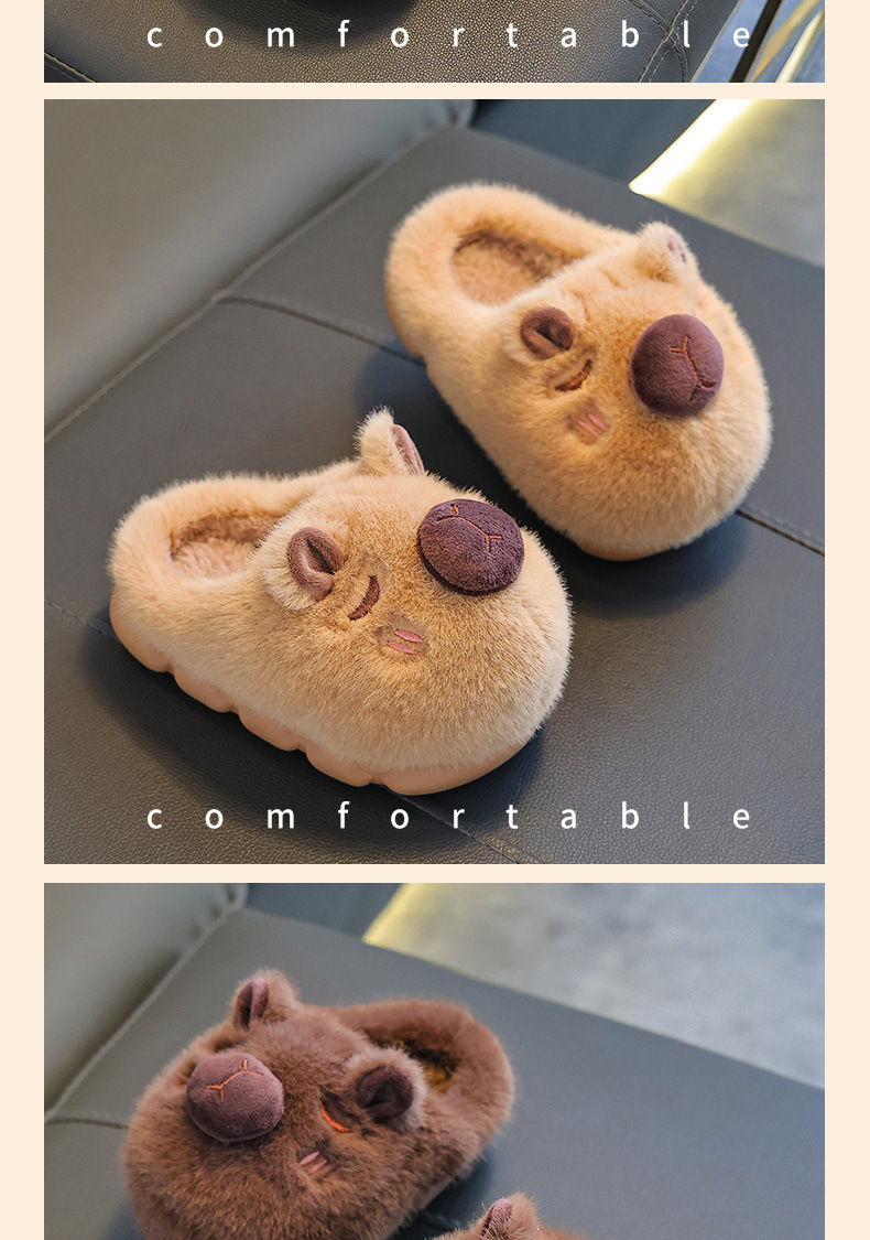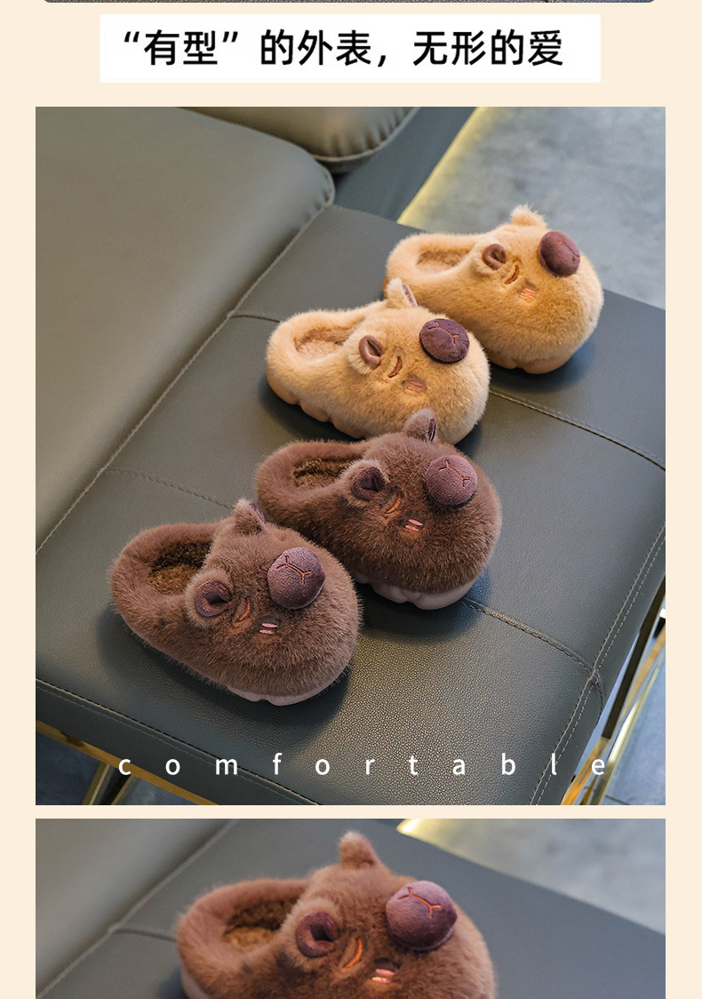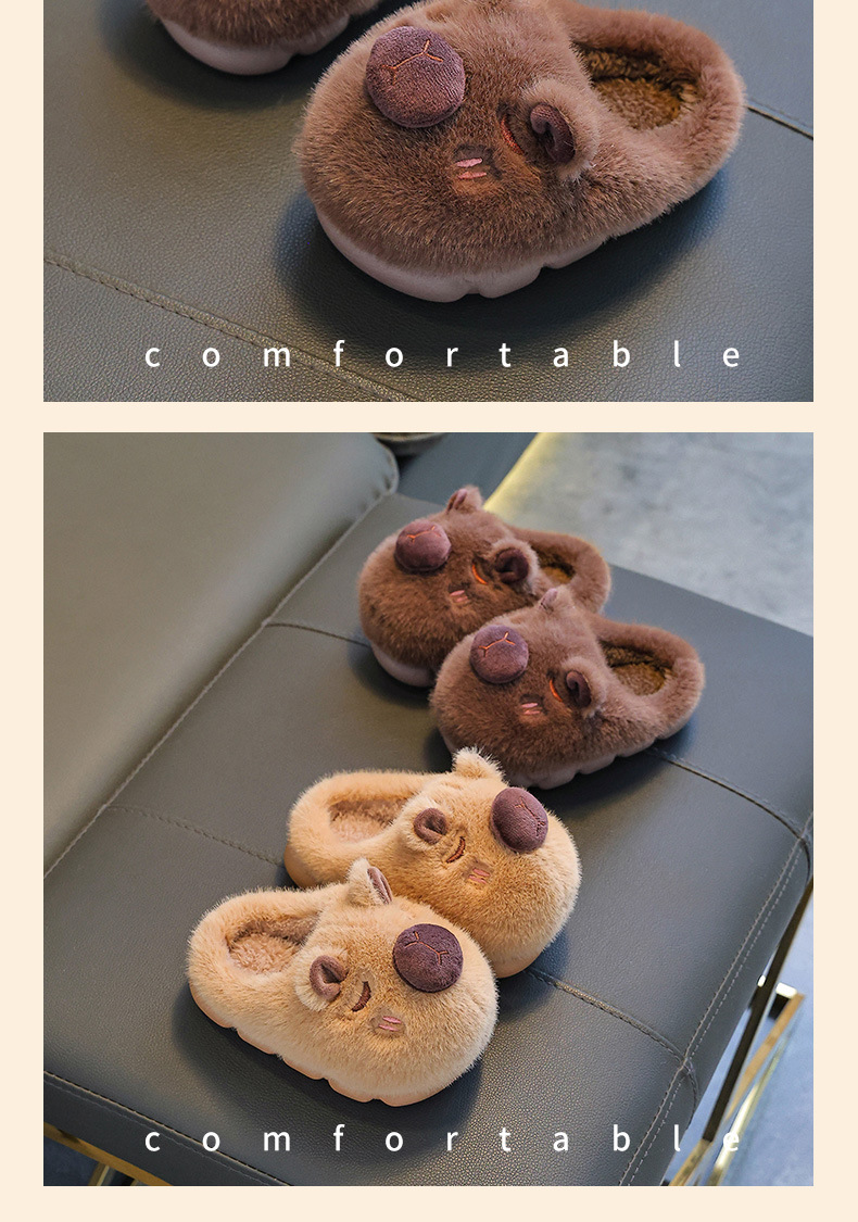 Zapatillas de algodón de invierno para niños Capibara, zapatillas de algodón para niños y niñas calientes y pelusa para padres e hijos en casa.