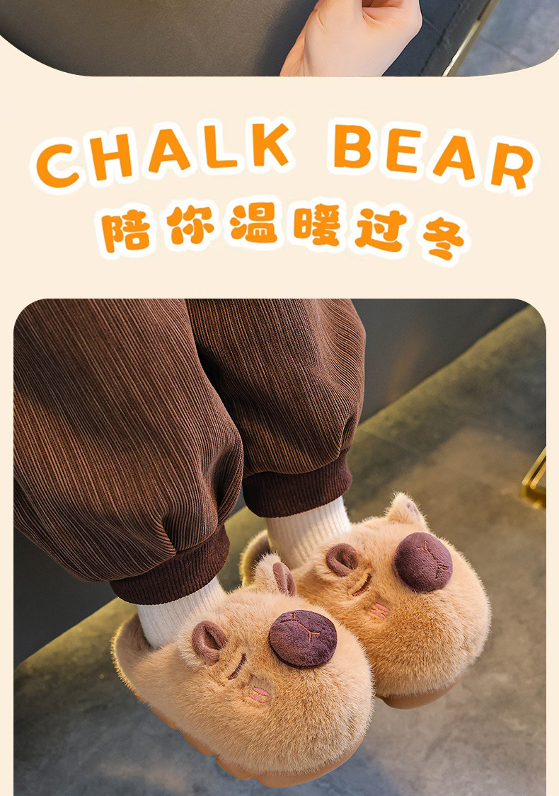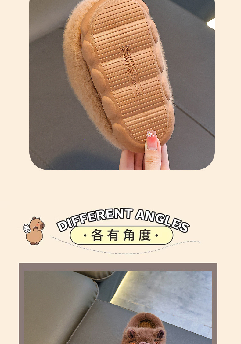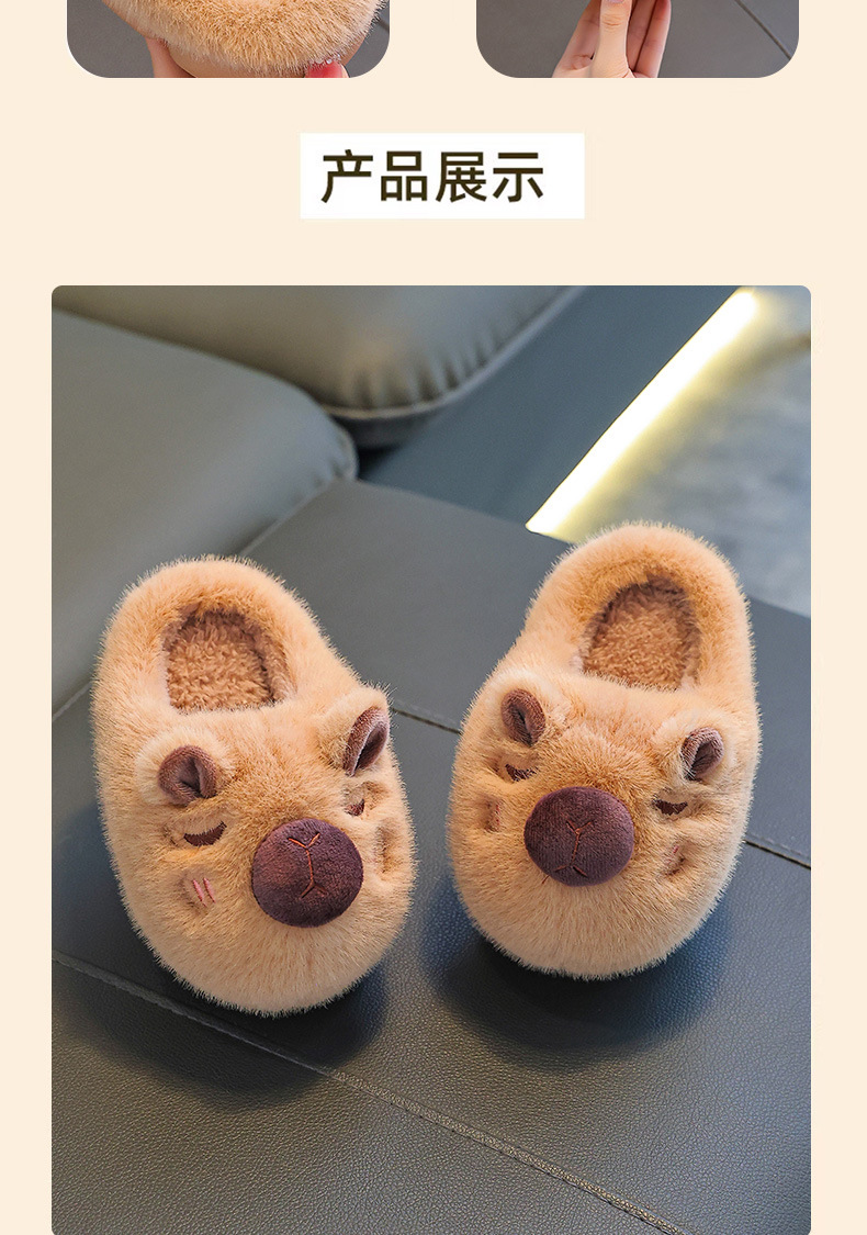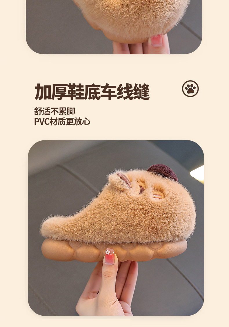 Zapatillas de algodón de invierno para niños Capibara, zapatillas de algodón para niños y niñas calientes y pelusa para padres e hijos en casa.