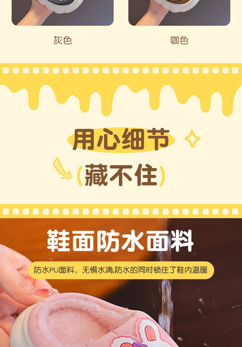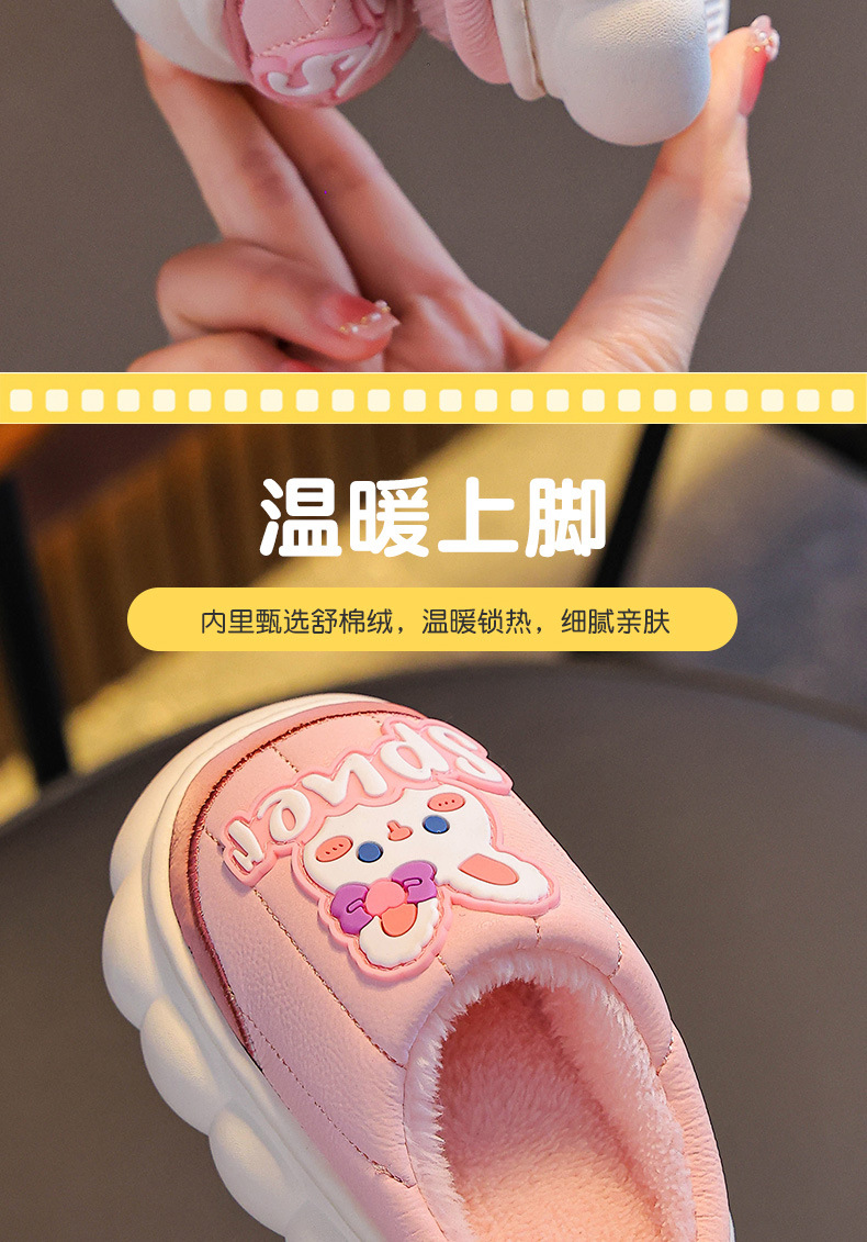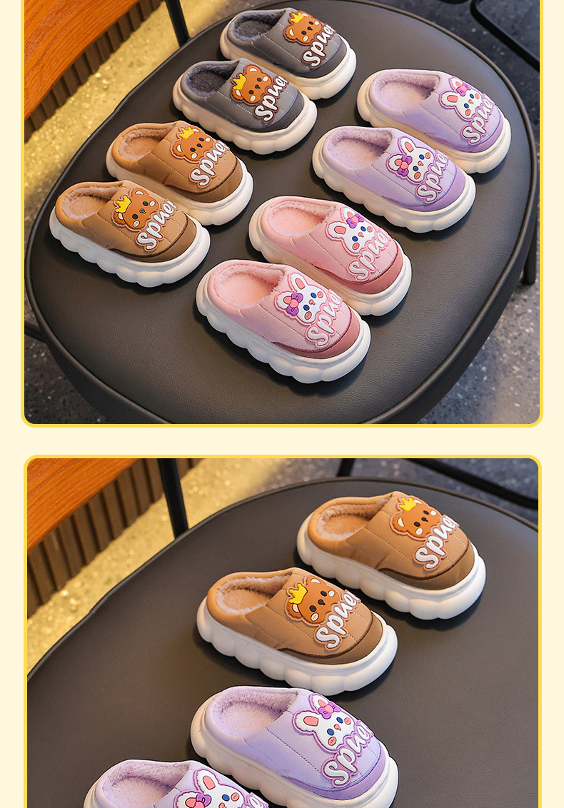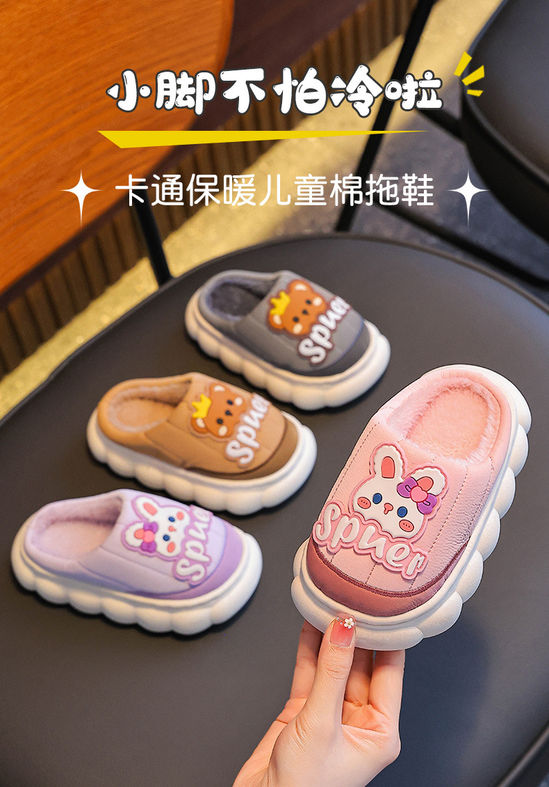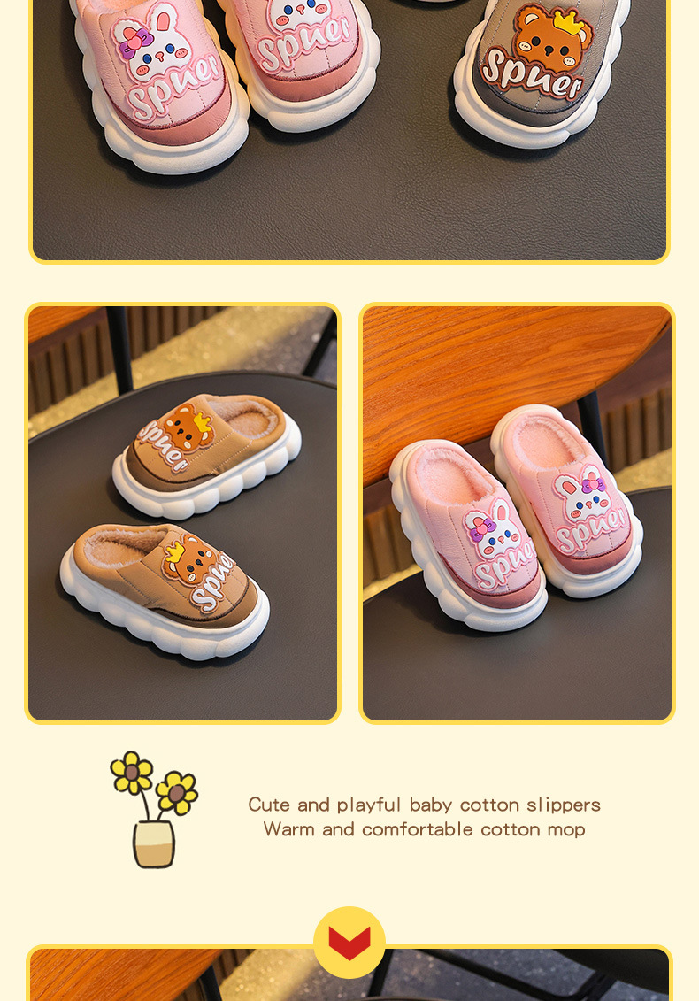 Otoño y invierno zapatillas de algodón impermeable para niños, piel PU cálida y bolsas de terciopelo, zapatillas de algodón para niños pequeños y medianos.