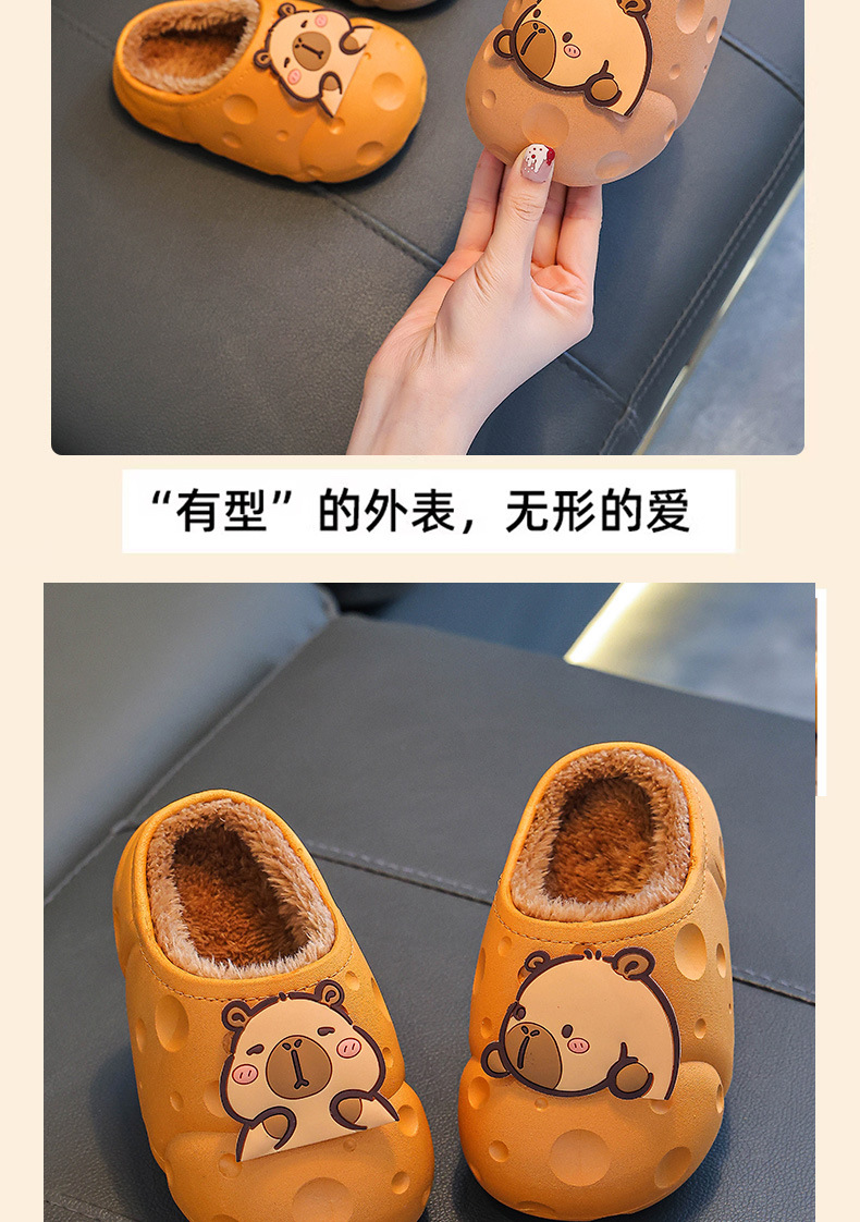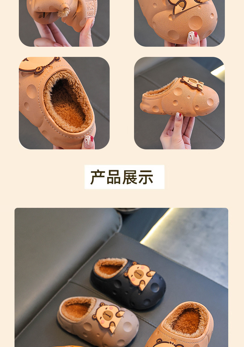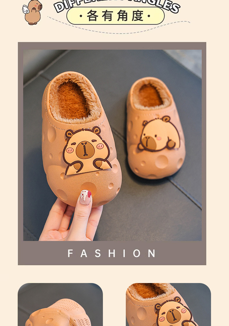 Capibara invierno zapatillas de algodón para niños, calentamiento, impermeabilización, zapatos de algodón para niños, bolsas de tacones para niños