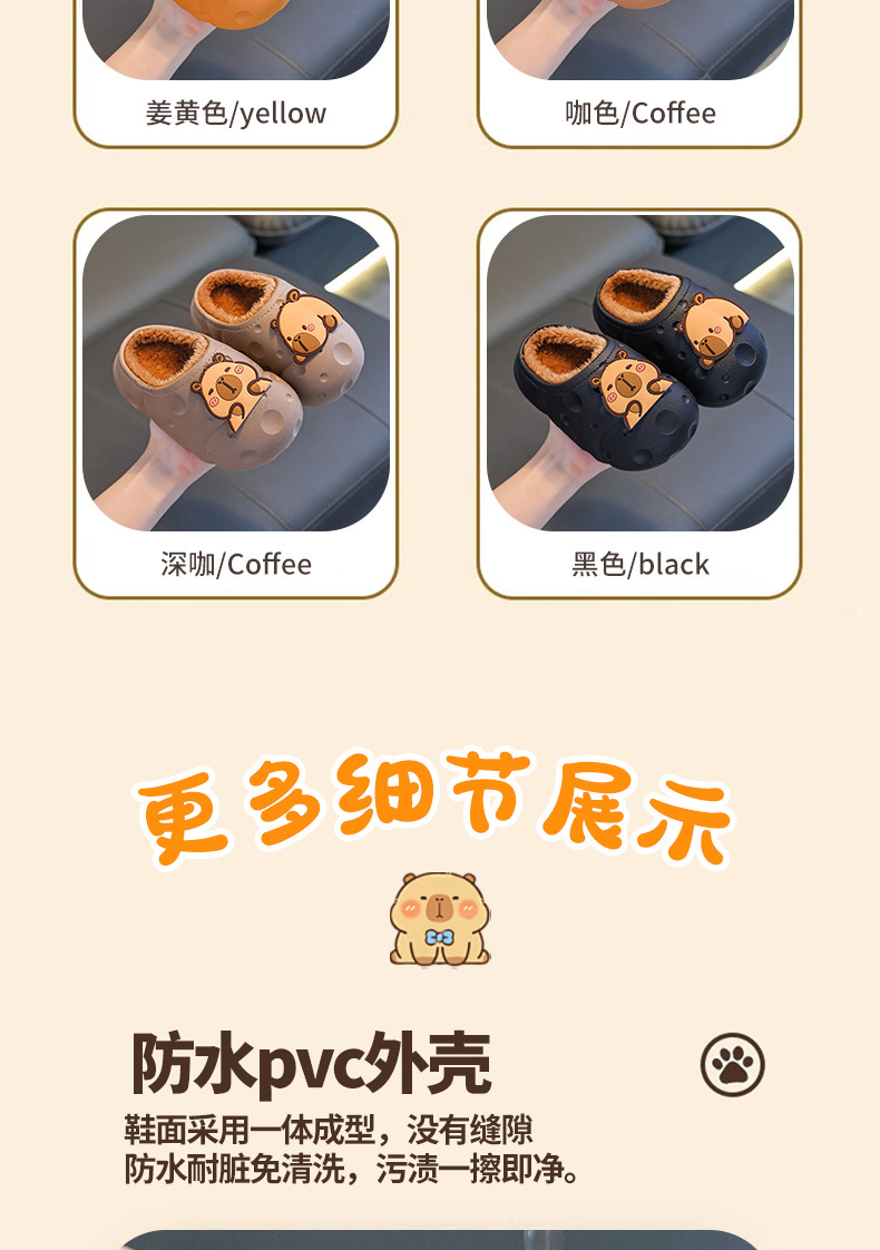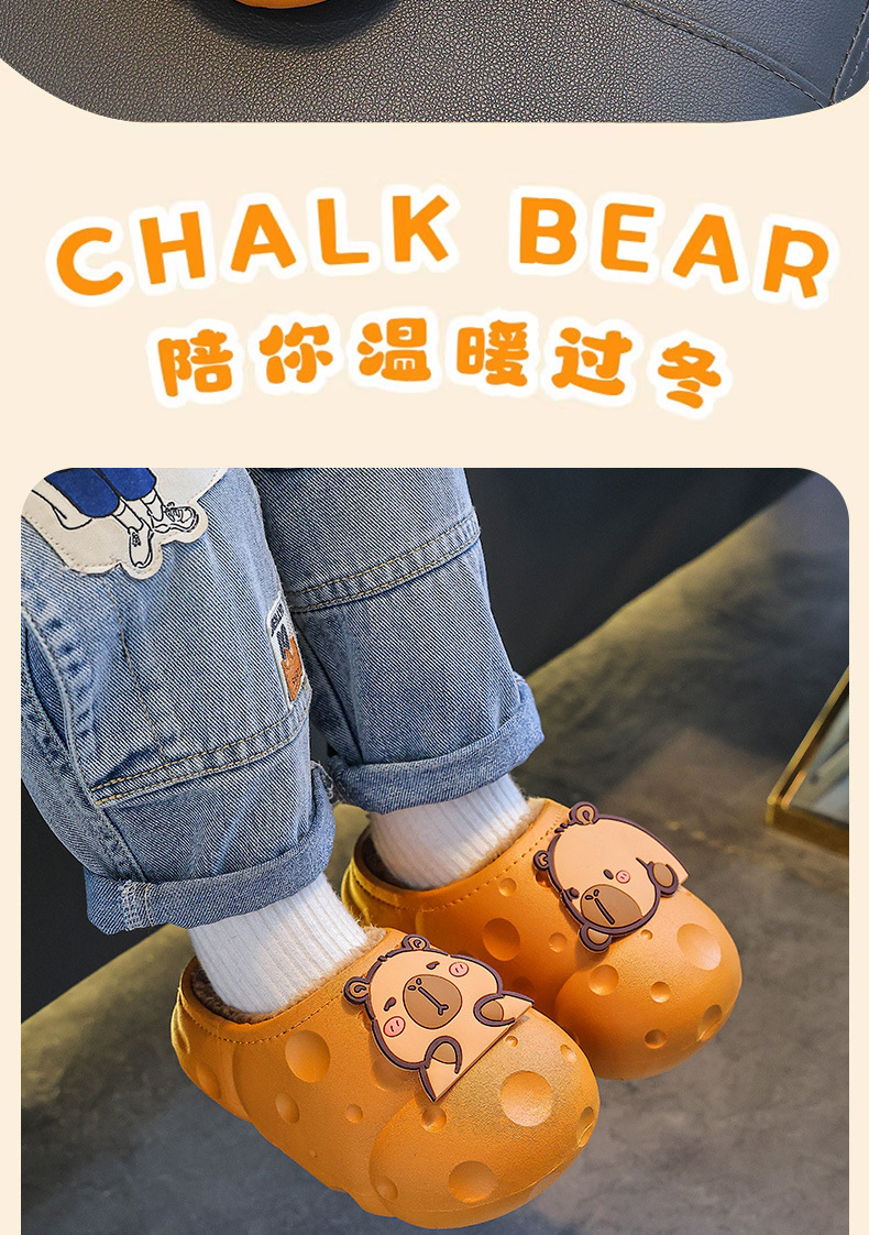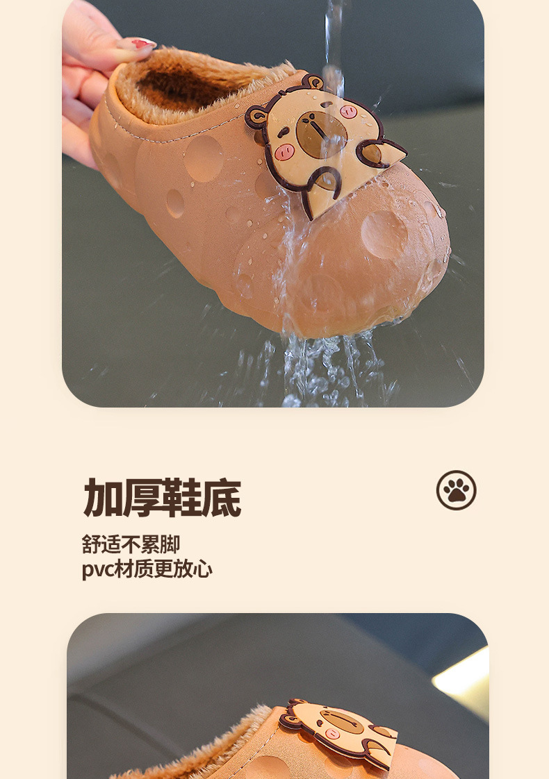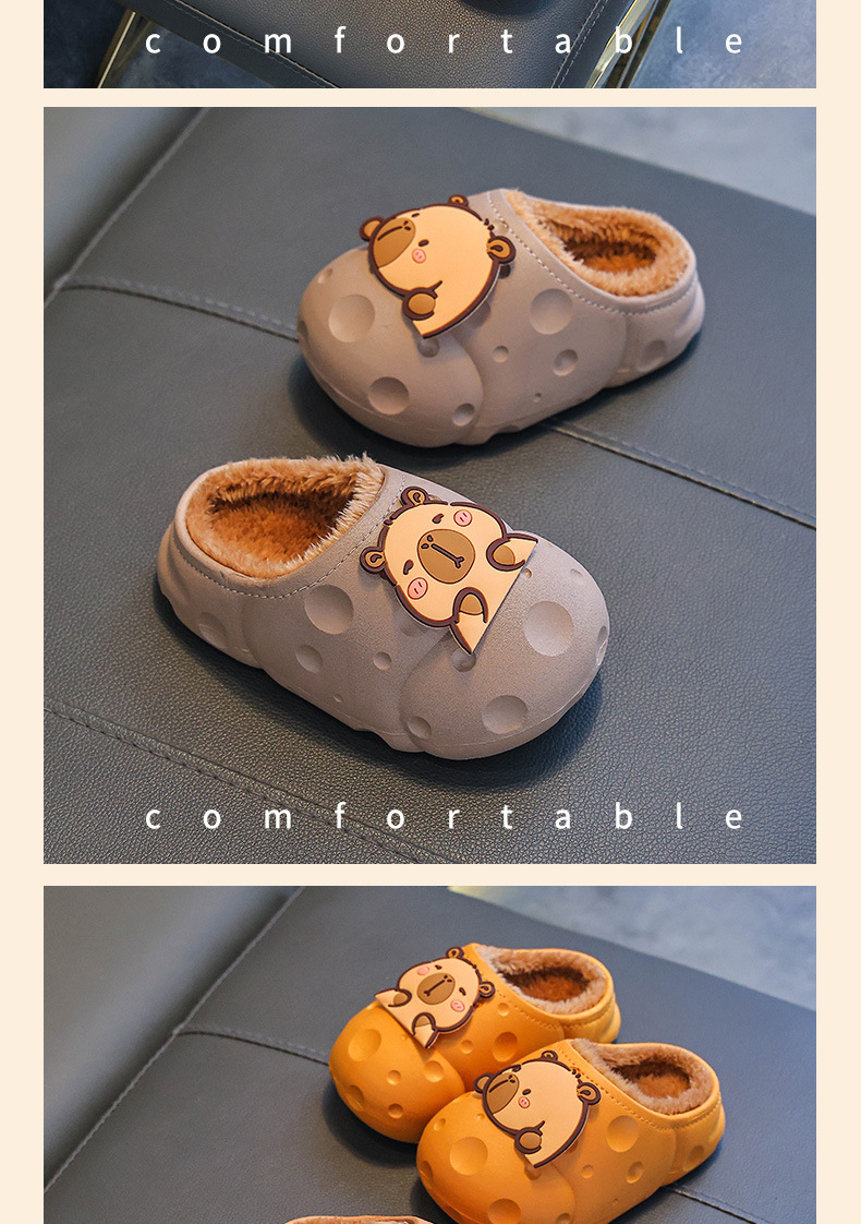 Capibara invierno zapatillas de algodón para niños, calentamiento, impermeabilización, zapatos de algodón para niños, bolsas de tacones para niños