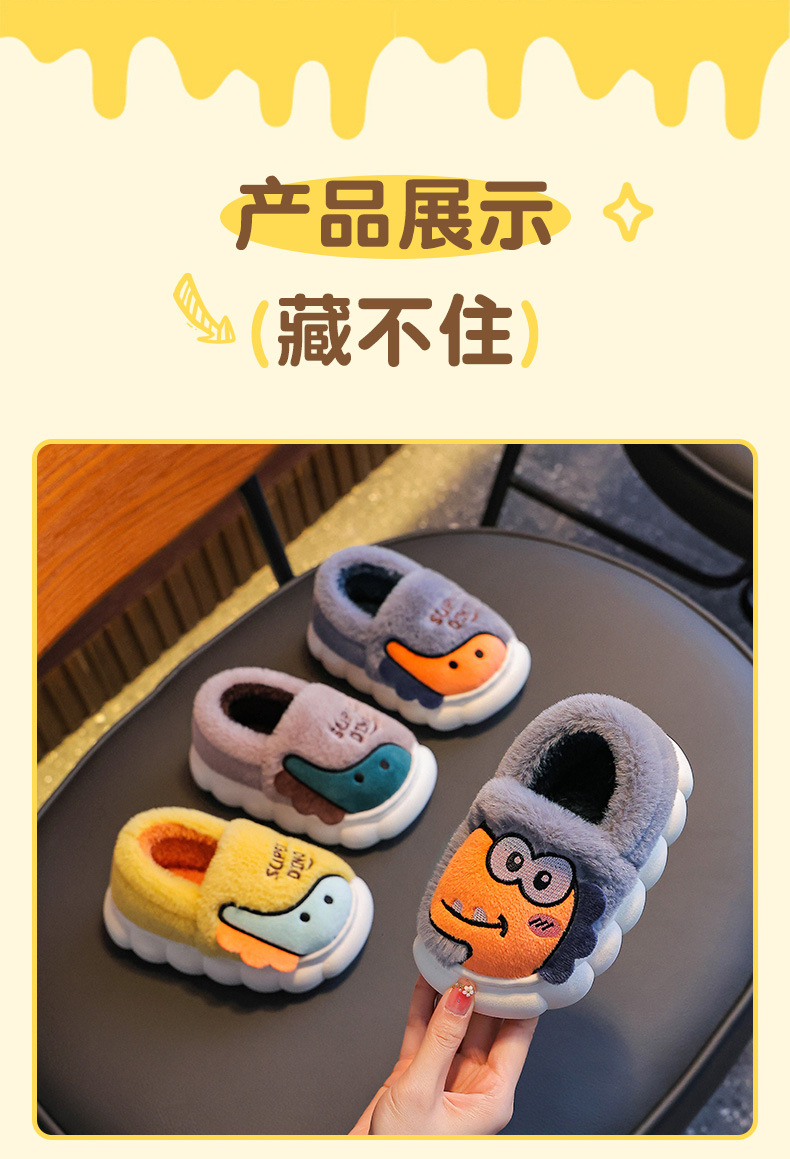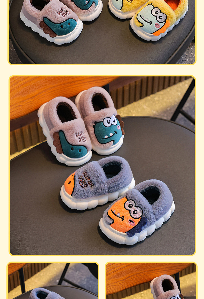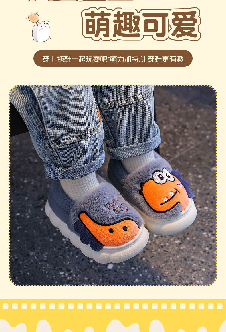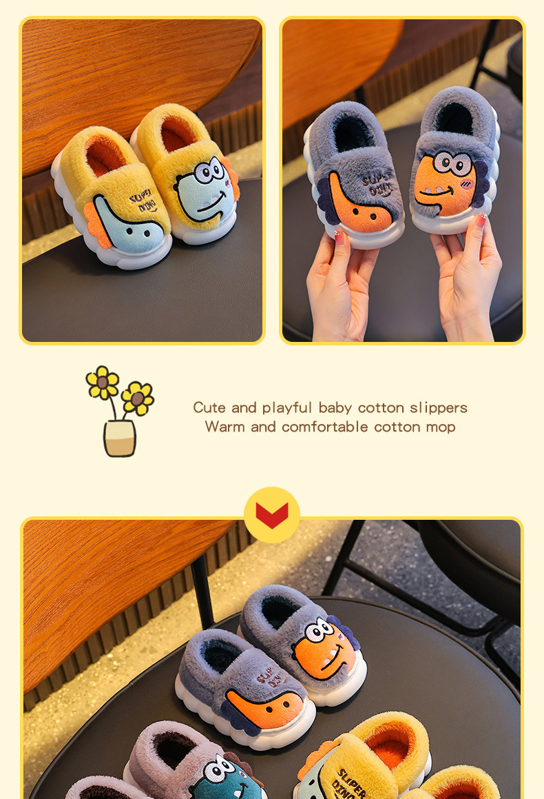 Zapatillas de algodón de invierno para niños y niñas, bolsas de calentamiento con dinosaurios de pelusa antideslizante, zapatos de algodón para padres e hijos