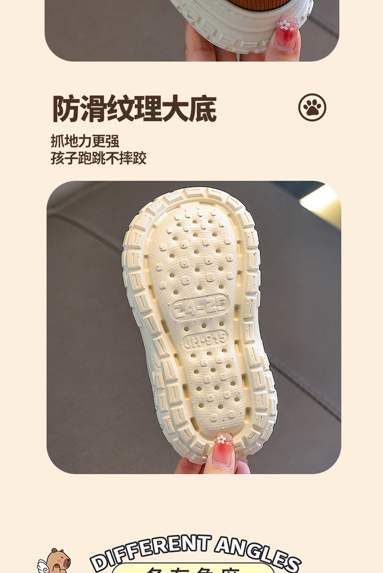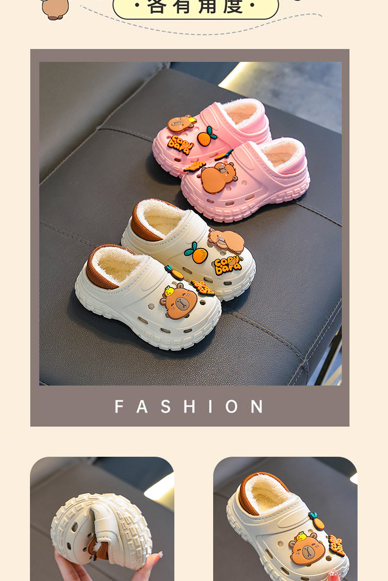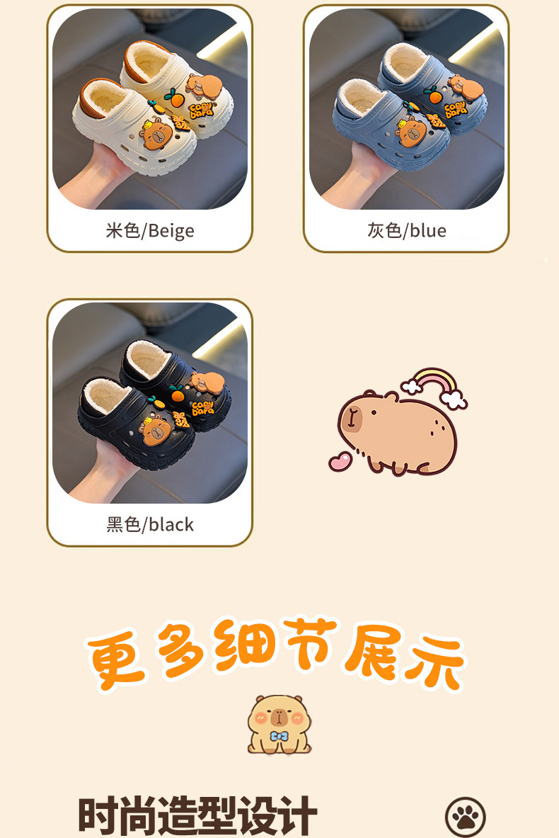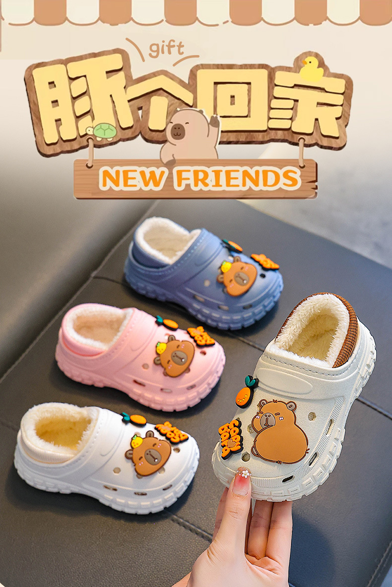 Zapatillas de algodón para niños Capibara, invierno para niños, niñas y niños, calentamiento de lana impermeable para padres y niños, bolsas de tacones de algodón para niños mayores.