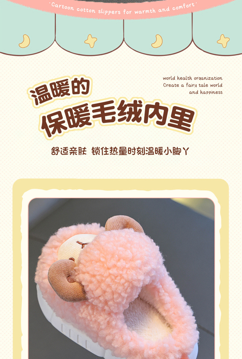 Zapatillas de algodón para niños otoño y invierno, niños y niñas lindos y cálidos con pelusa, bolsas de bebé antideslizantes, zapatillas de algodón