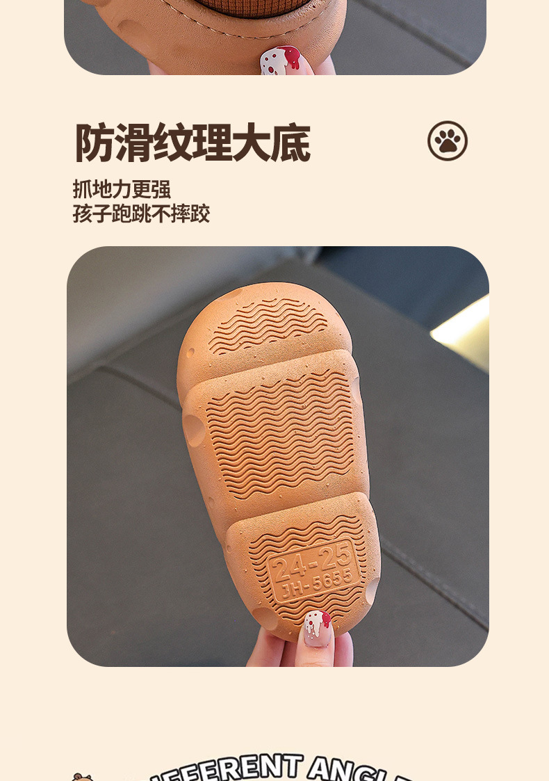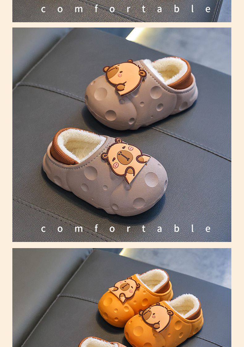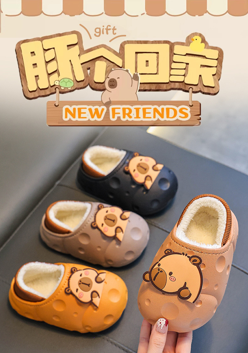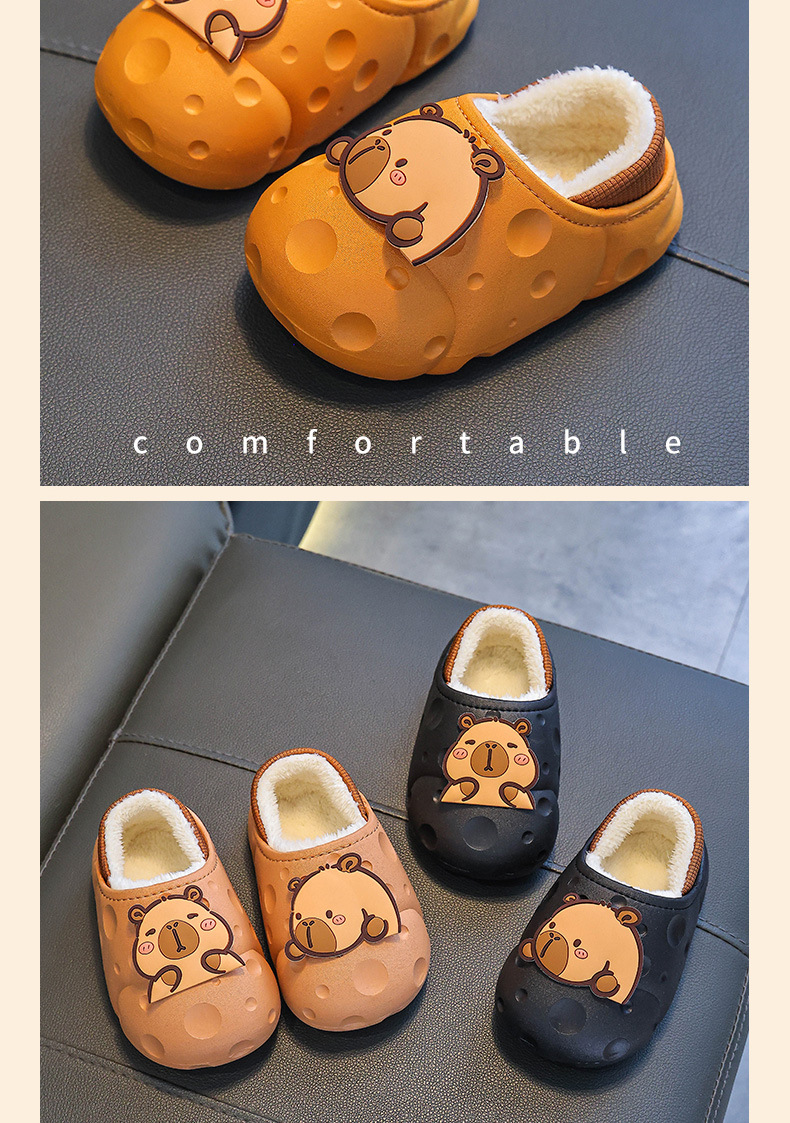 Capibara invierno zapatillas de algodón para niños, calentamiento y terciopelo impermeable, bolsas caseras para niños, zapatos de algodón de tacones