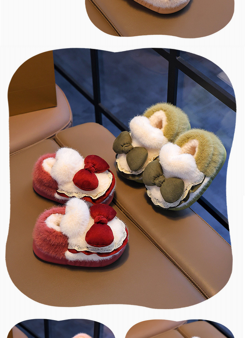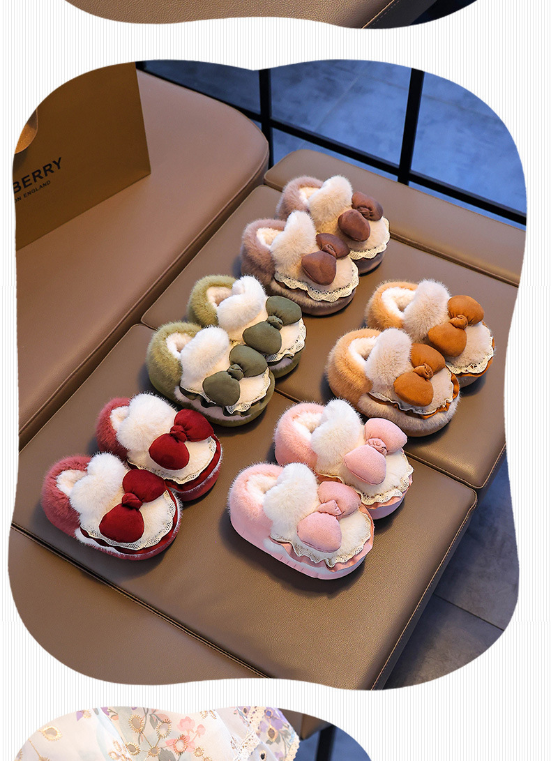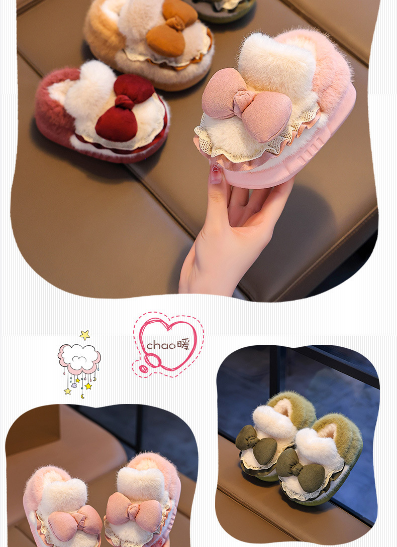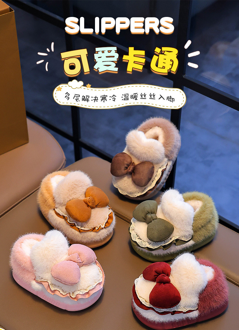Zapatillas de algodón para niños tacones de invierno cálidos bolsas de arco casero tacones de EVA fondo antideslizante zapatos de algodón de lana para bebés