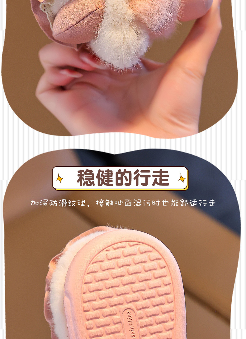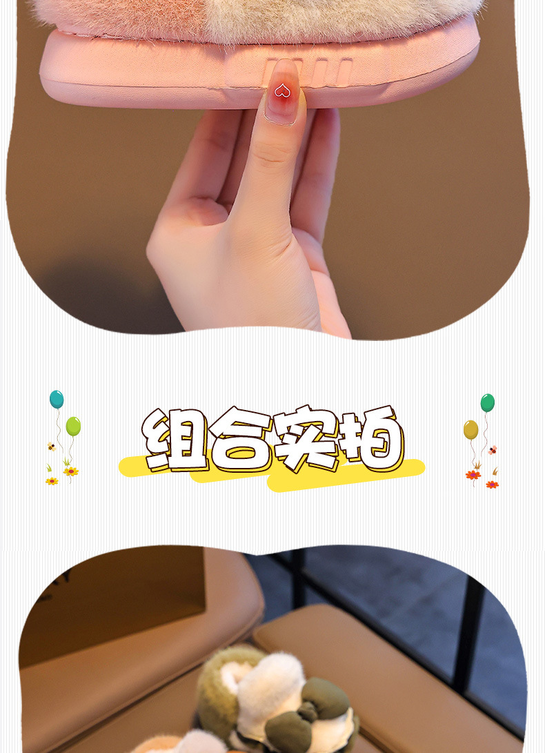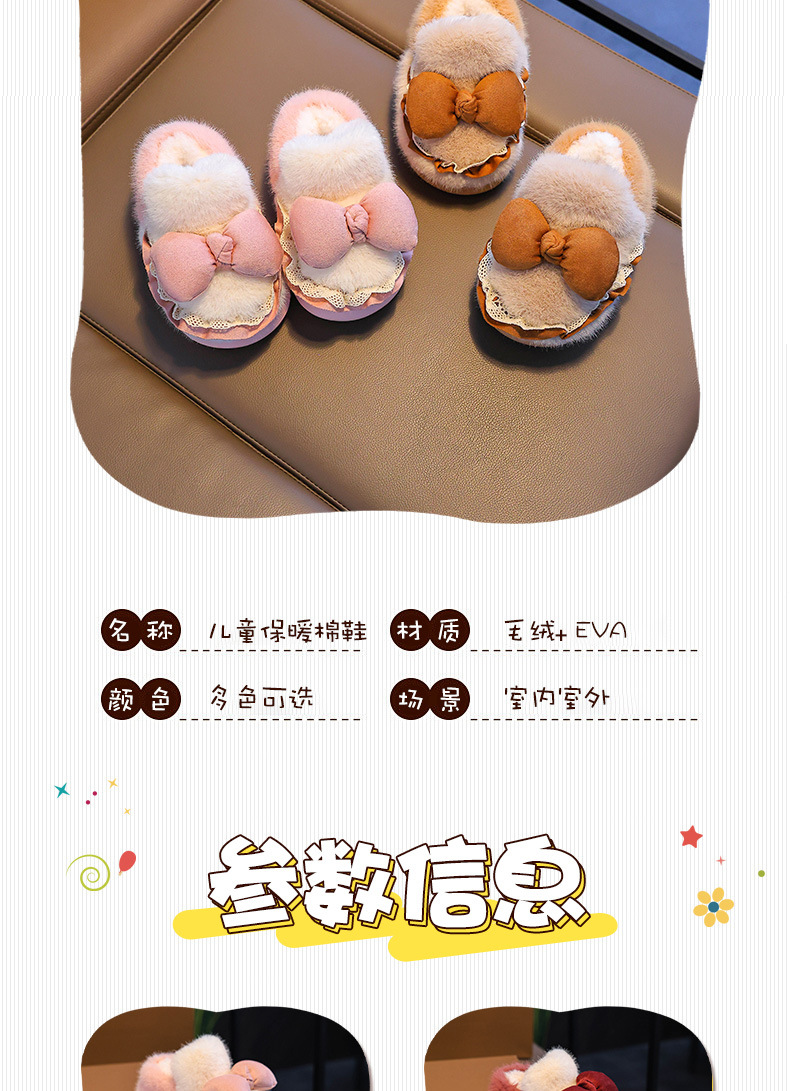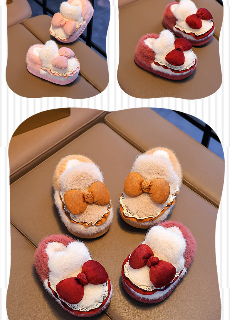Zapatillas de algodón para niños tacones de invierno cálidos bolsas de arco casero tacones de EVA fondo antideslizante zapatos de algodón de lana para bebés
