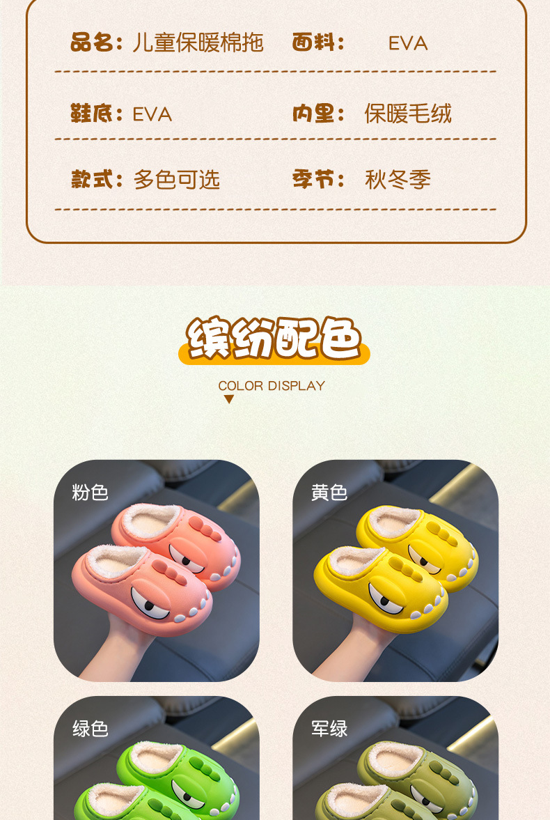 Zapatillas de algodón para niños invierno niños Eva caca sensación bolsa talón impermeable antideslizante forro de lana caliente bebé Zapatillas de algodón