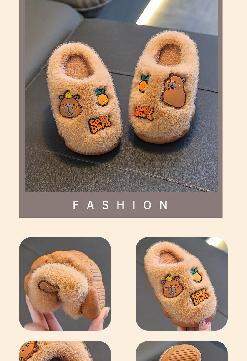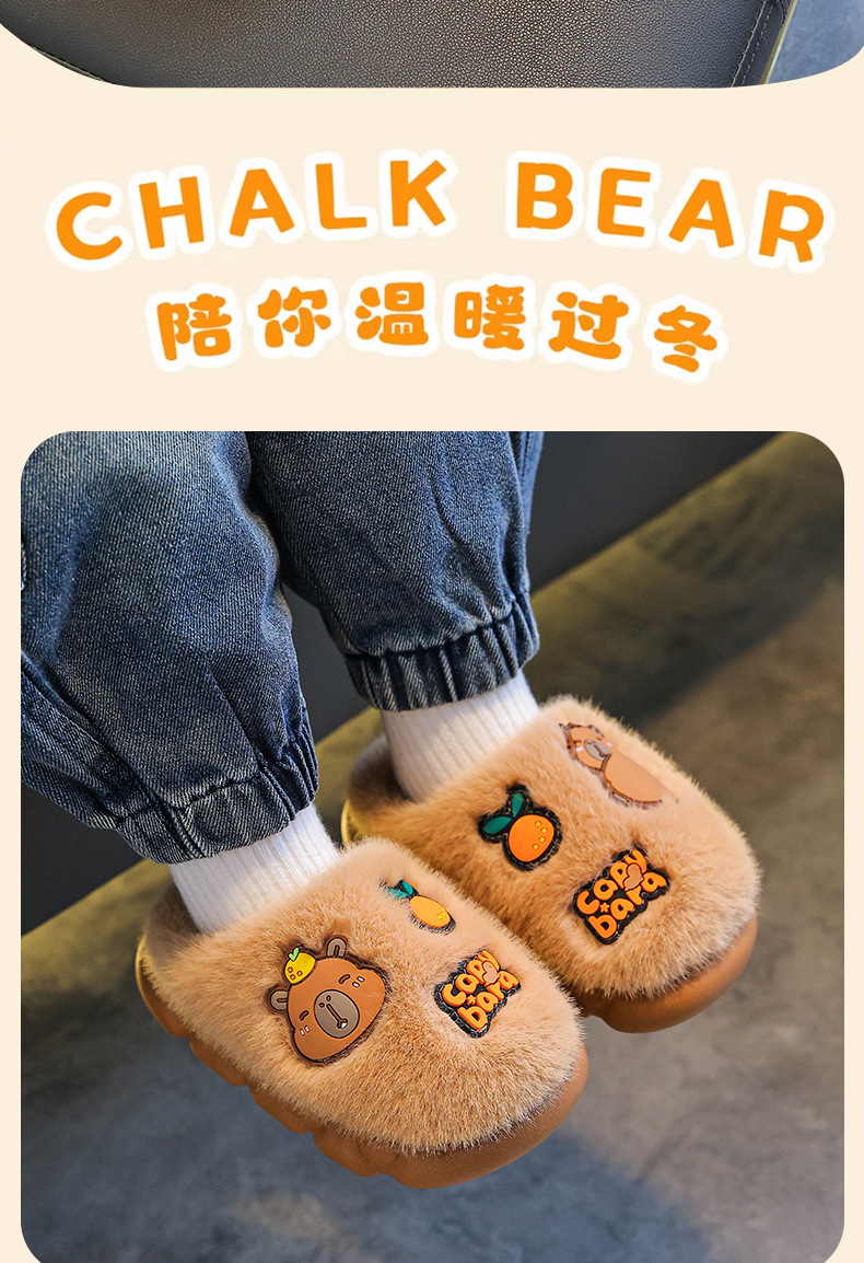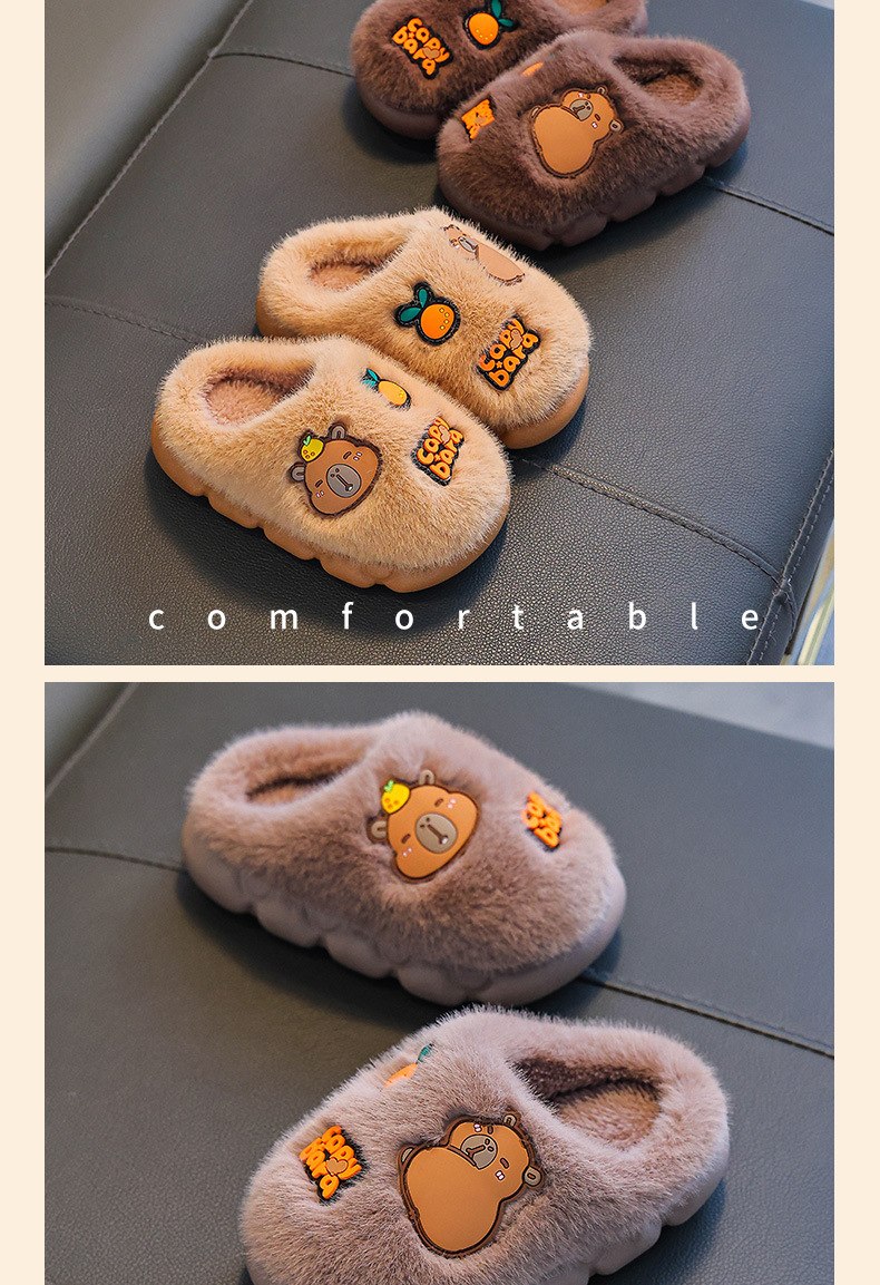 Zapatillas de algodón para niños Capibara, invierno para niños, niñas y niños, calentamiento y terciopelo para padres e hijos en el hogar, zapatos de algodón para niños medianos y grandes.