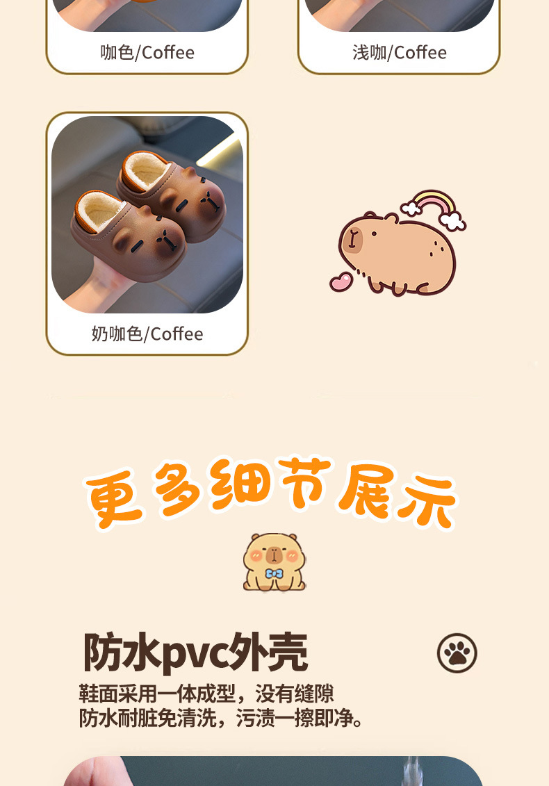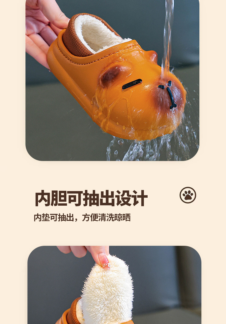 Zapatillas de algodón para niños Capibara, zapatillas de algodón para niños y niñas de invierno, zapatillas de algodón para padres y niños, zapatos de algodón para niños mayores y niños
