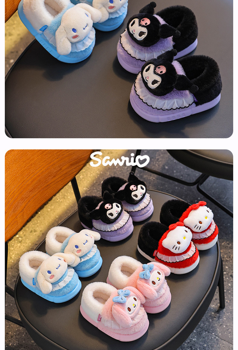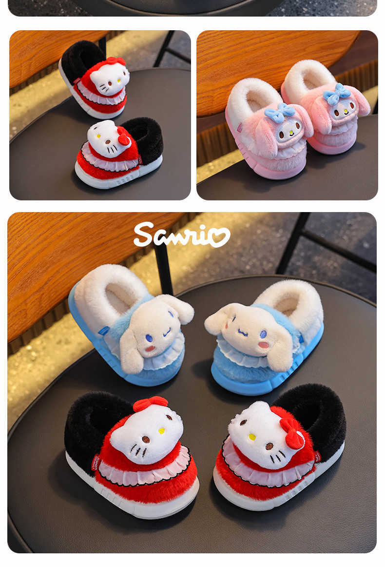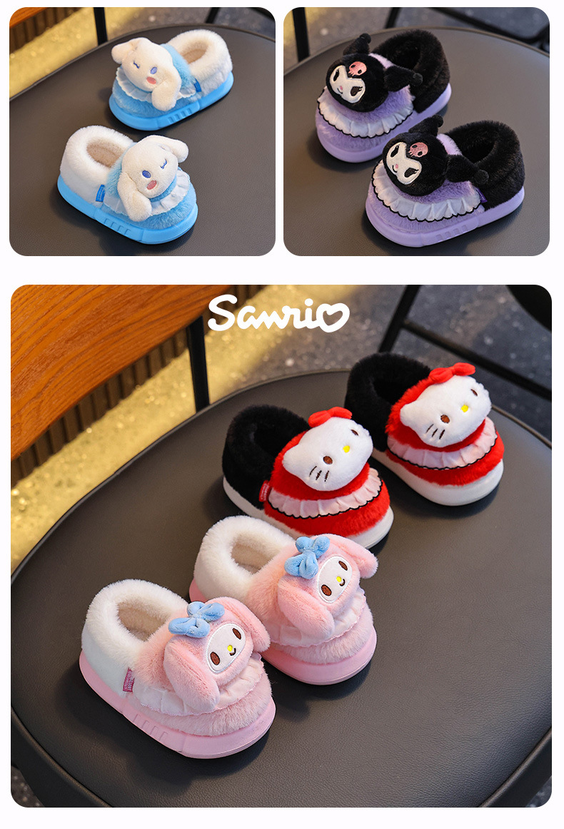 Melody bolsas de invierno para niños zapatos de algodón de talón cálido y pelusa Sanrio anti-deslizante zapatillas de algodón para padres e hijos