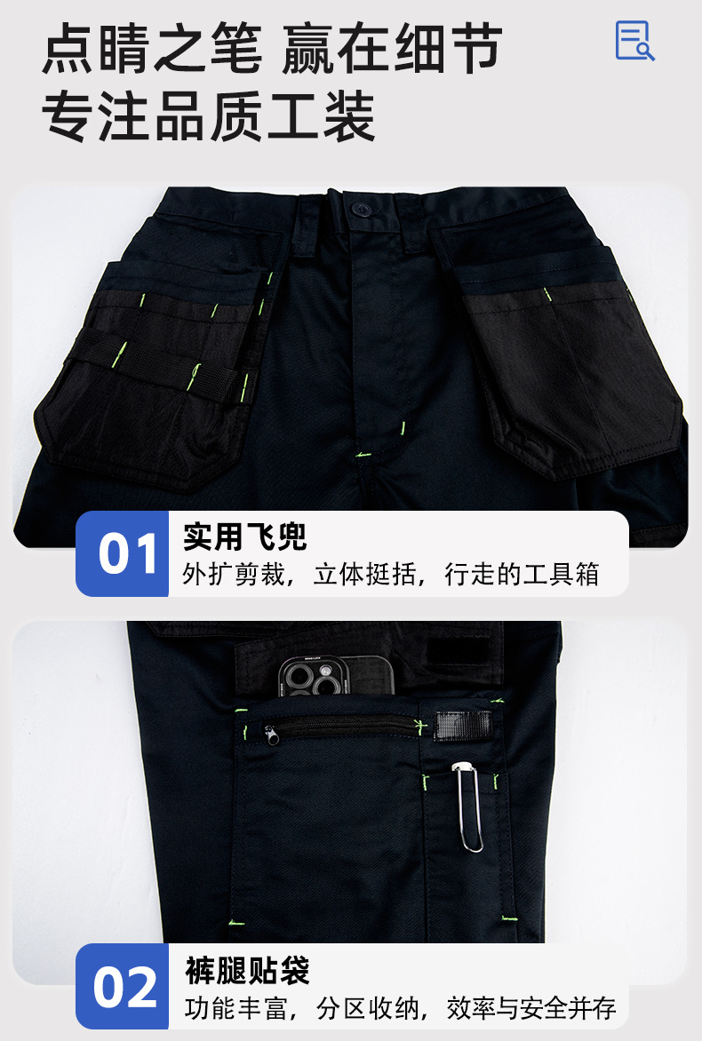 Pantalones de trabajo resistentes a la fabricación de primavera y otoño transfronterizos multibolsillos resistentes al desgaste y resistentes a la desgaste, pantalones de protección laboral reforzados para trabajadores de la construcción