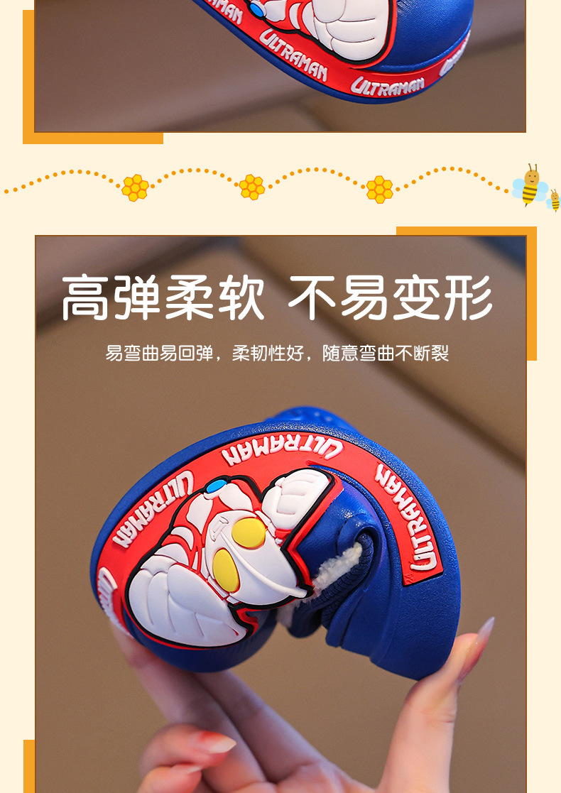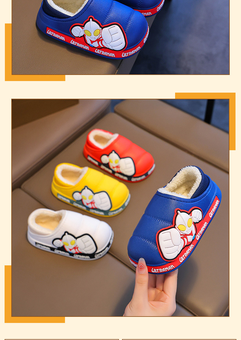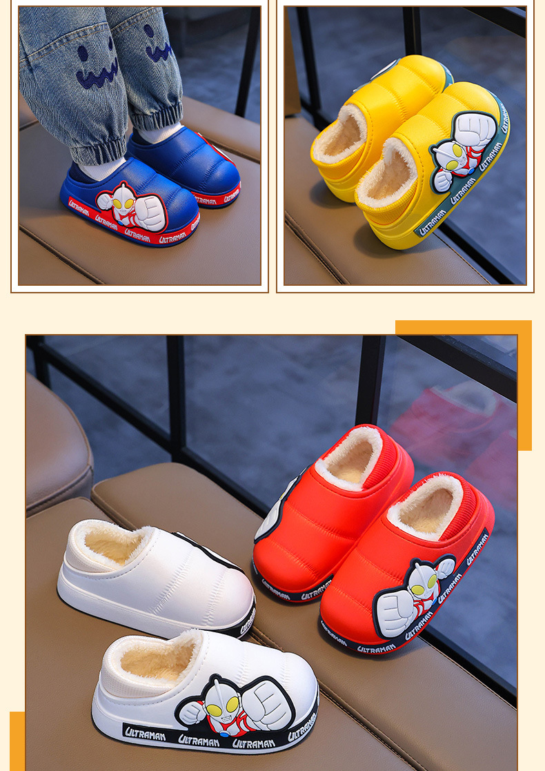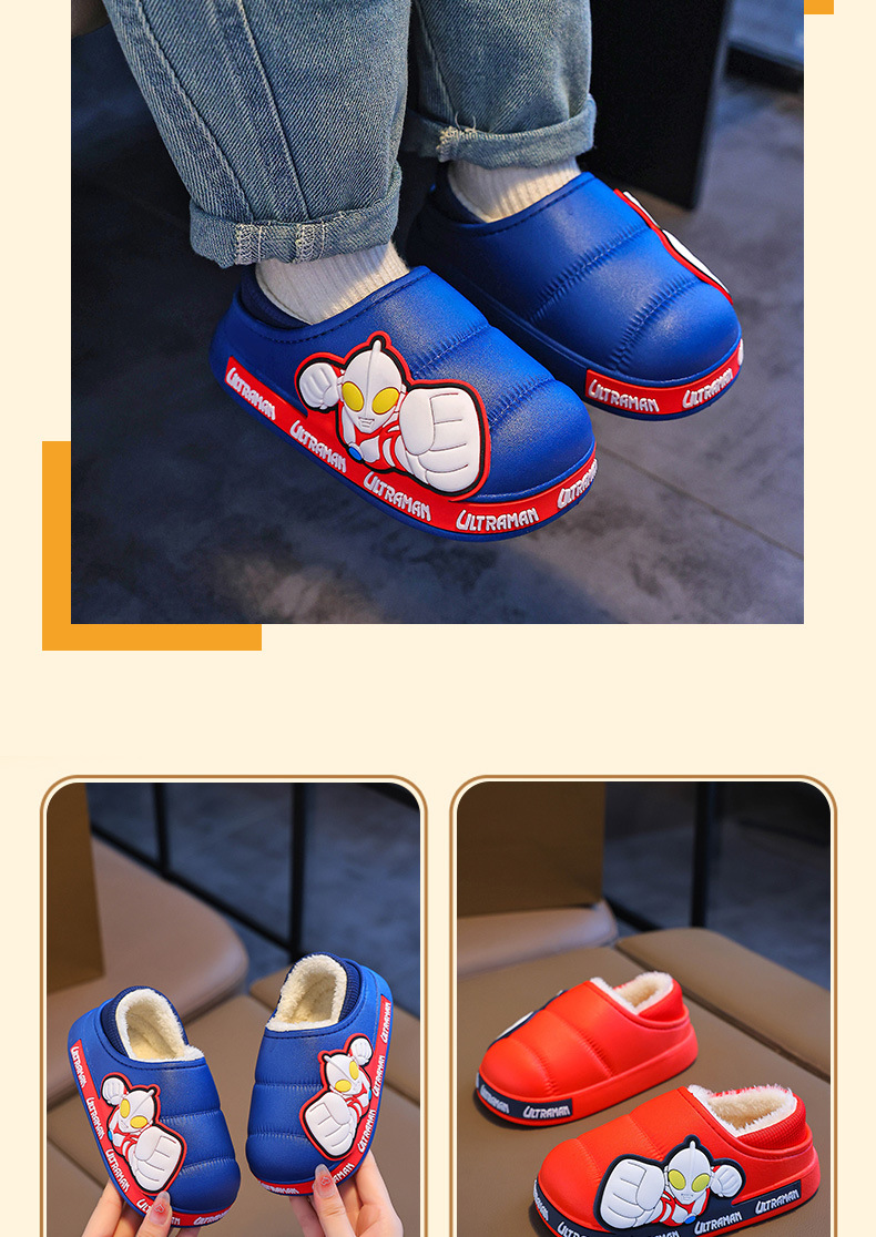 Zapatillas para niños Ultraman niños dibujos animados invierno hogar interior y exterior para usar zapatillas de algodón impermeable bolsa antideslizante