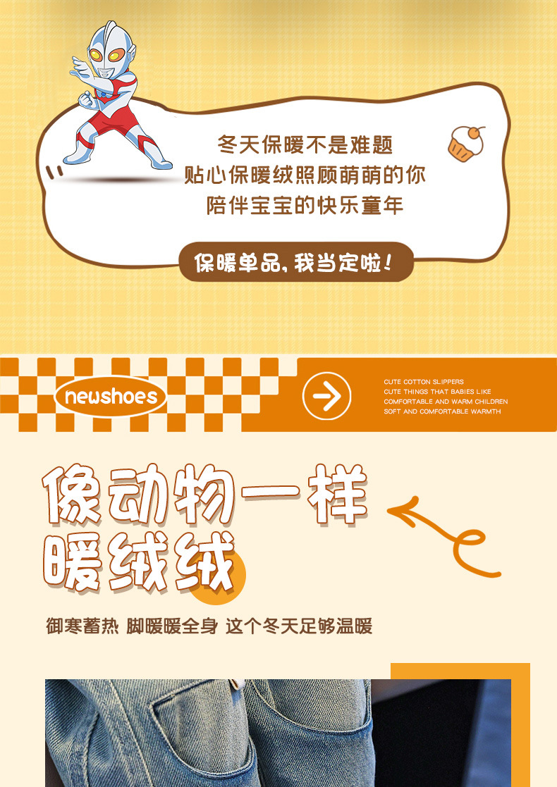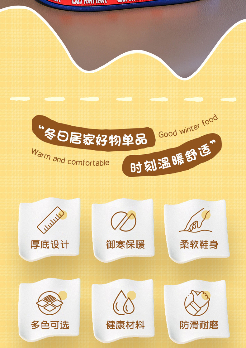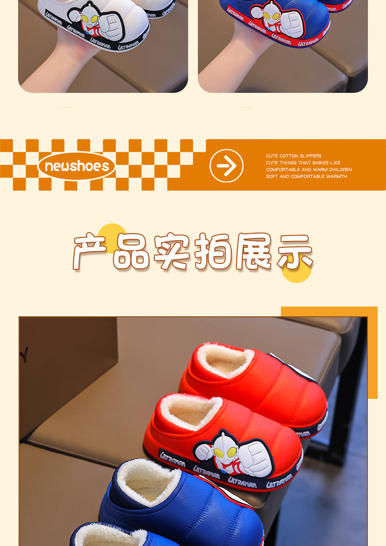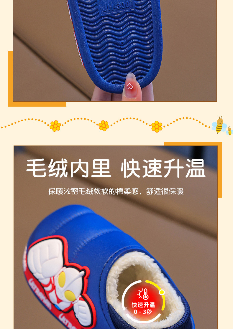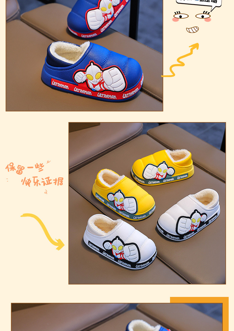 Zapatillas para niños Ultraman niños dibujos animados invierno hogar interior y exterior para usar zapatillas de algodón impermeable bolsa antideslizante