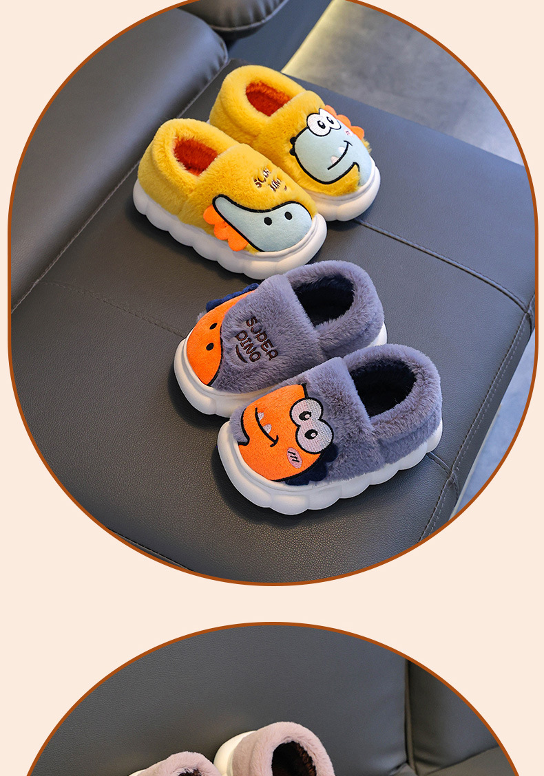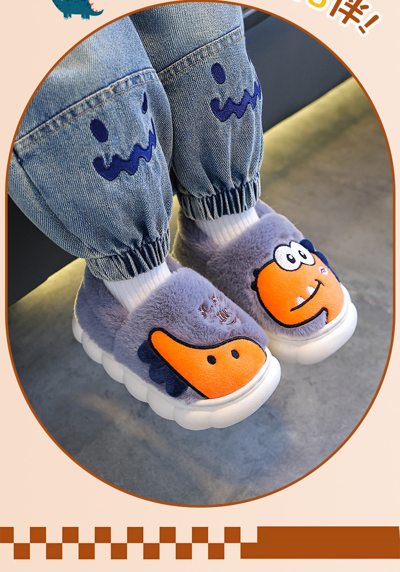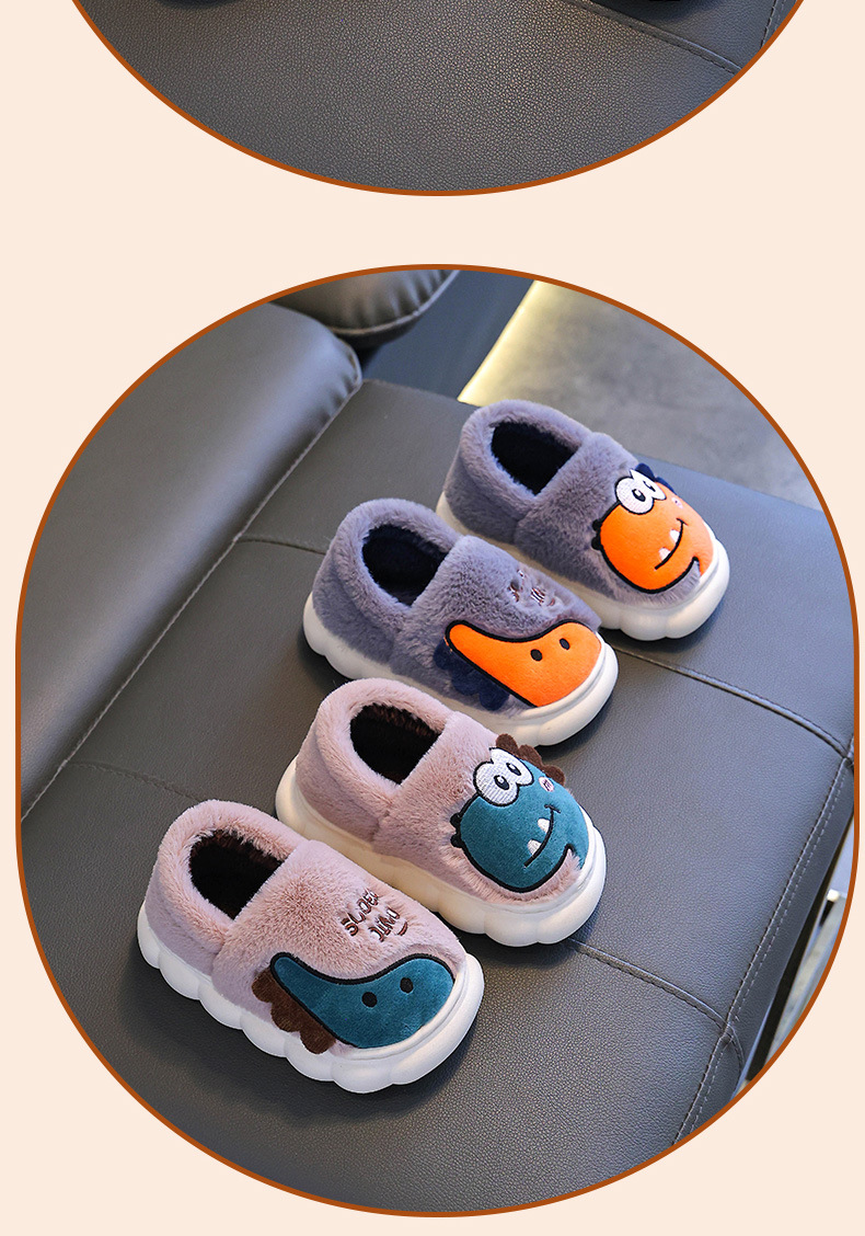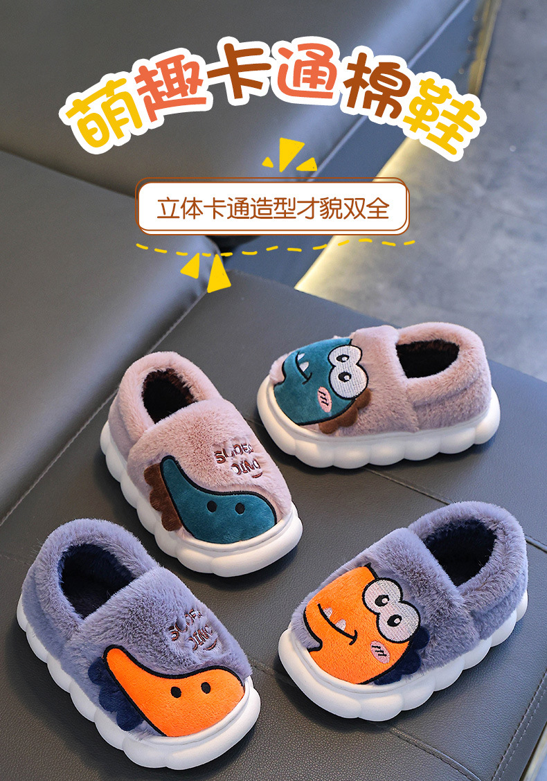 Zapatillas de algodón para niños de invierno caliente con pelusa antideslizante para mujeres dinosaurios niños padres niños niños pequeños bolsas de tacones de algodón para niños