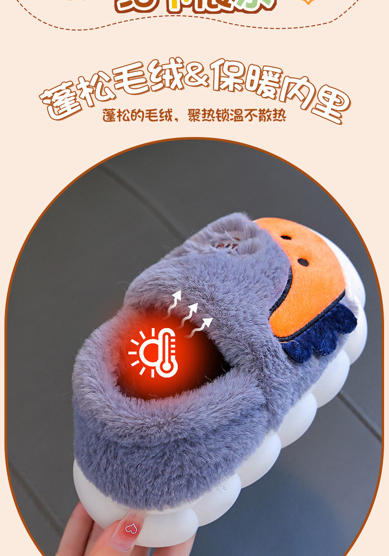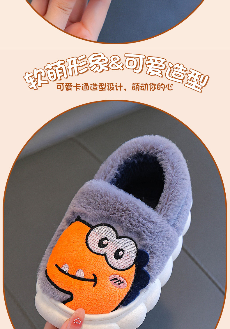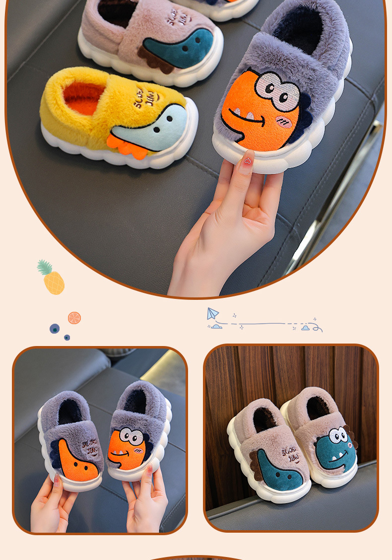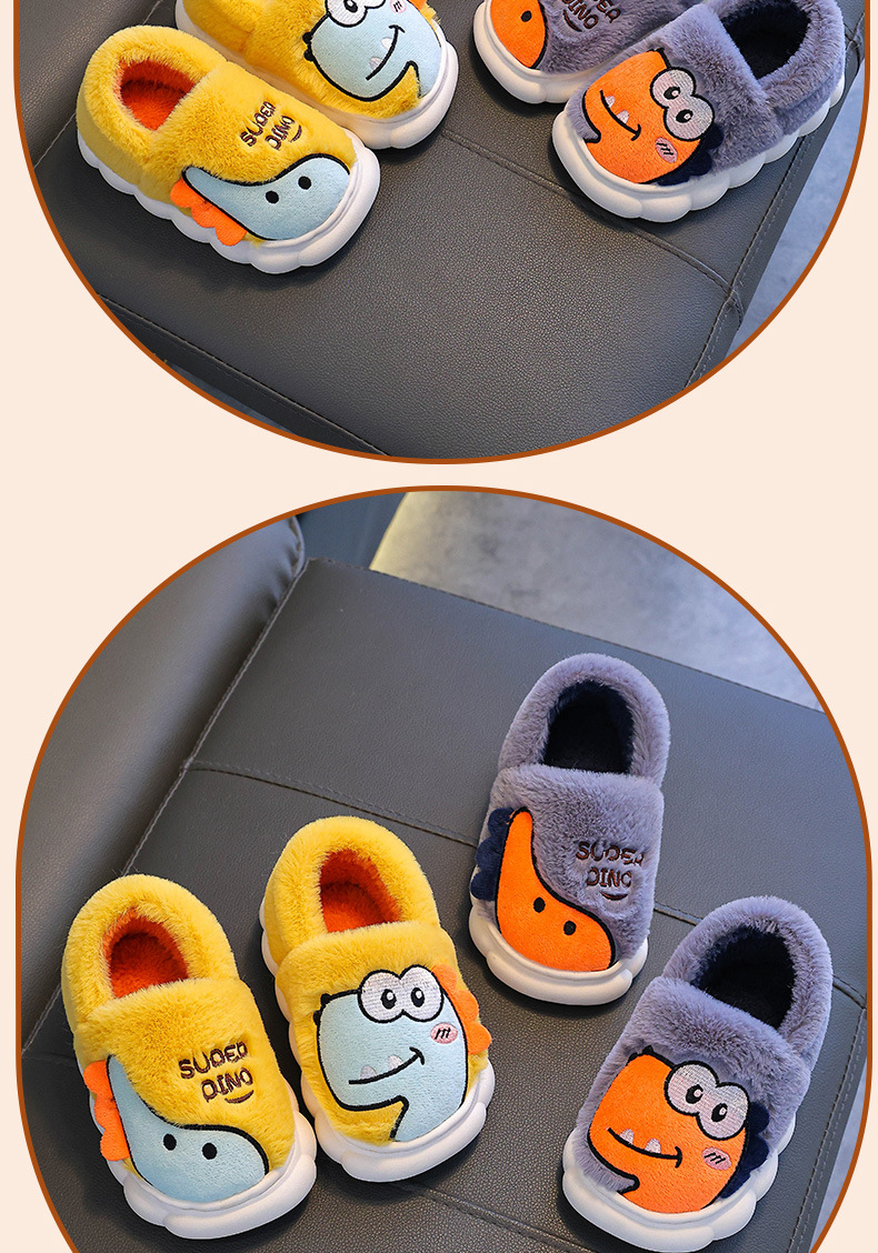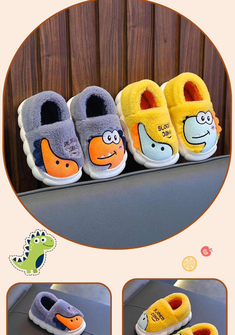 Zapatillas de algodón para niños de invierno caliente con pelusa antideslizante para mujeres dinosaurios niños padres niños niños pequeños bolsas de tacones de algodón para niños