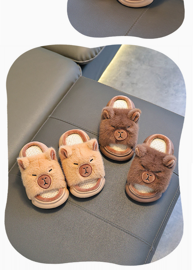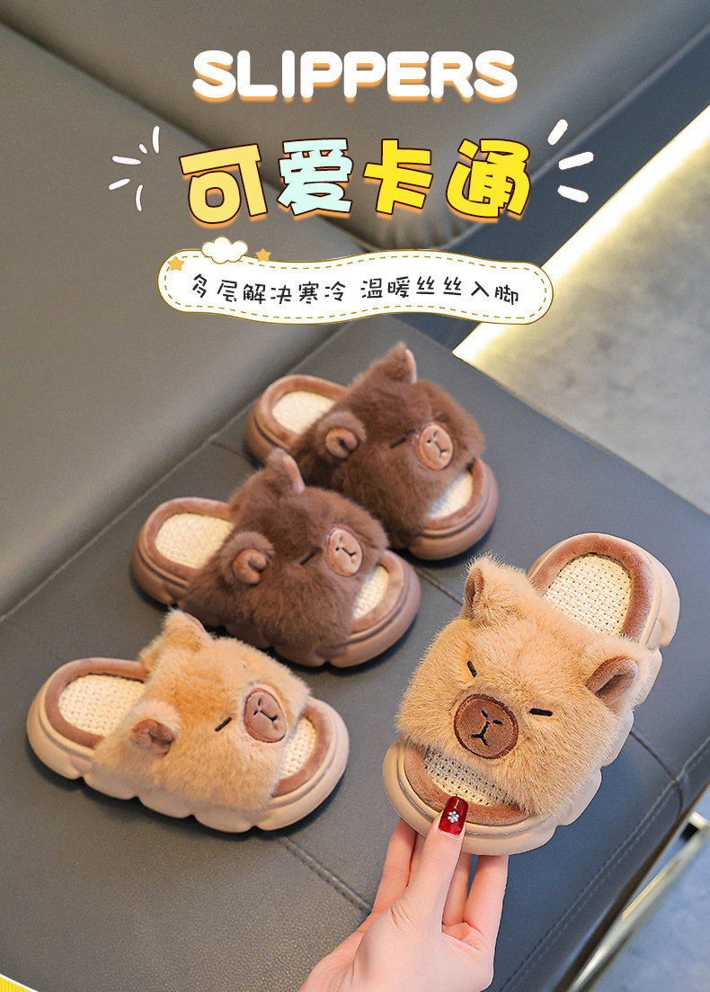 Capibara primavera y otoño zapatillas de lino para niños, niños y niñas lindos cuatro estaciones de algodón, zapatillas de algodón transpirables para padres e hijos