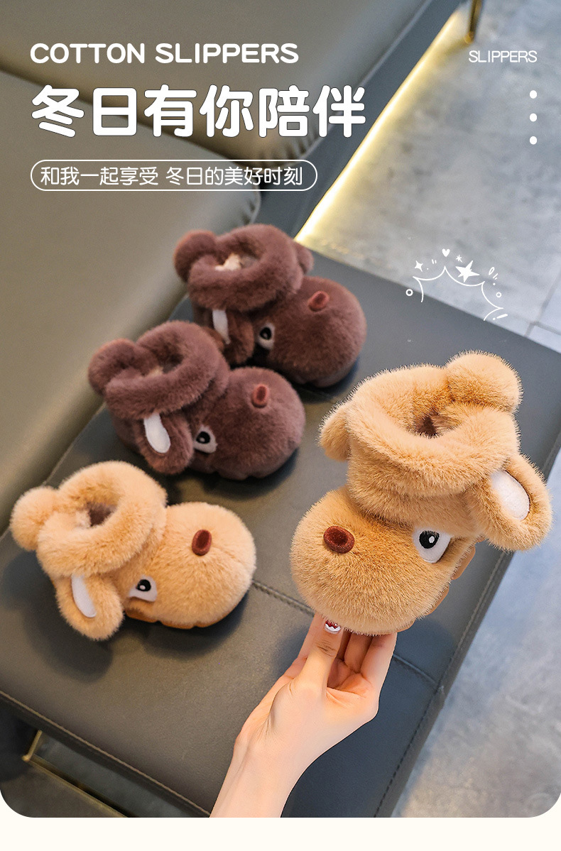 Otoño y invierno bolsas de tacones para niños, botas de algodón para niños y niñas, calentamiento y peluche para cachorros, zapatos de algodón para padres e hijos