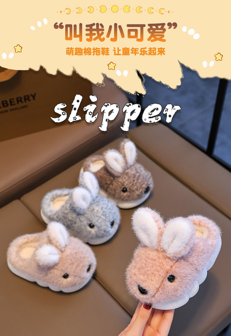 2024 nuevas zapatillas de algodón para niñas de invierno para el hogar antideslizantes para niñas cálidas y lindas zapatillas de algodón con bolsos para niños de felpa
