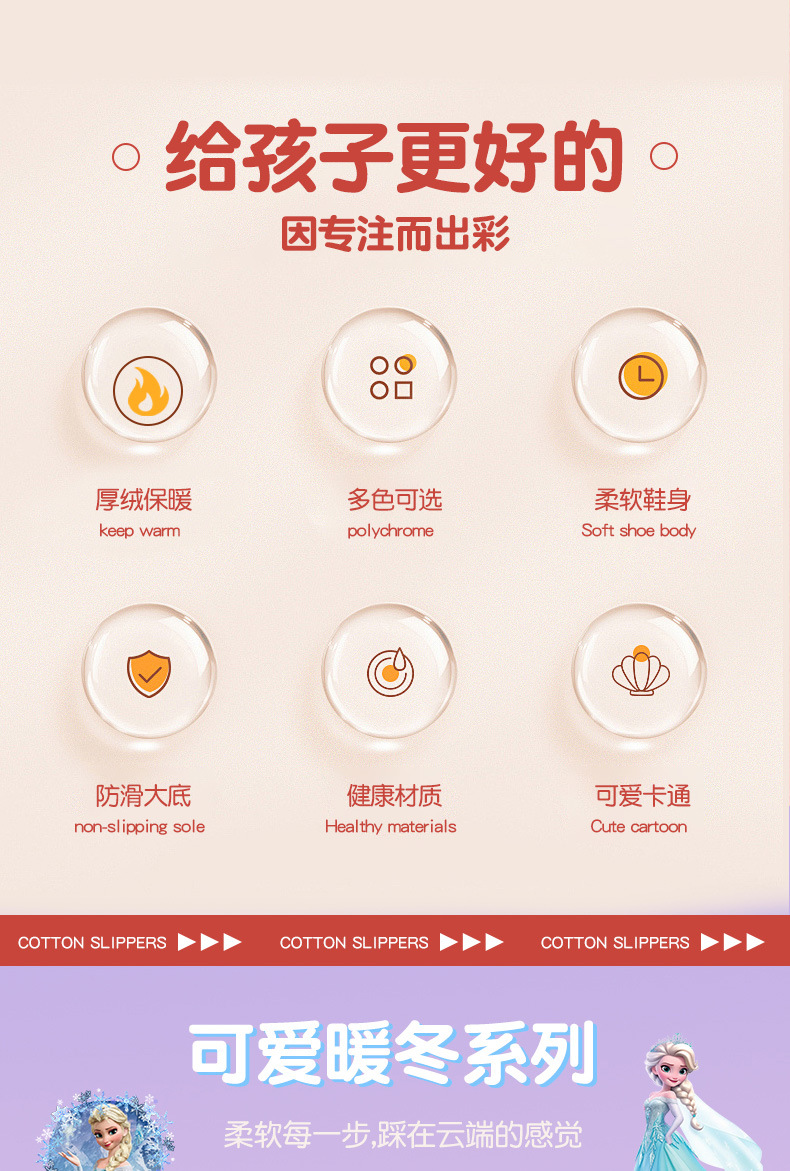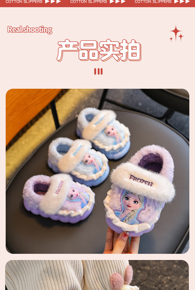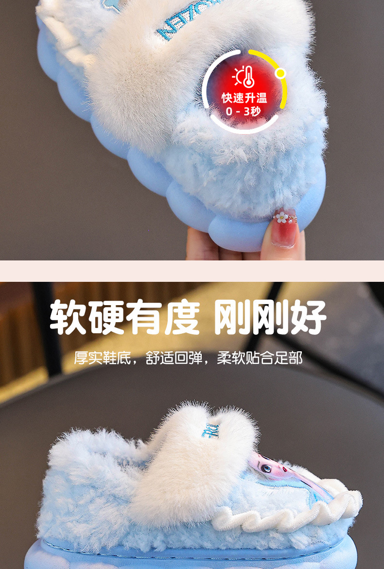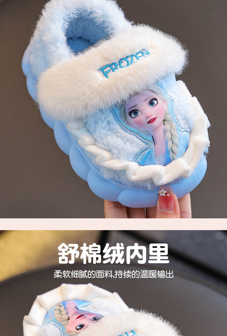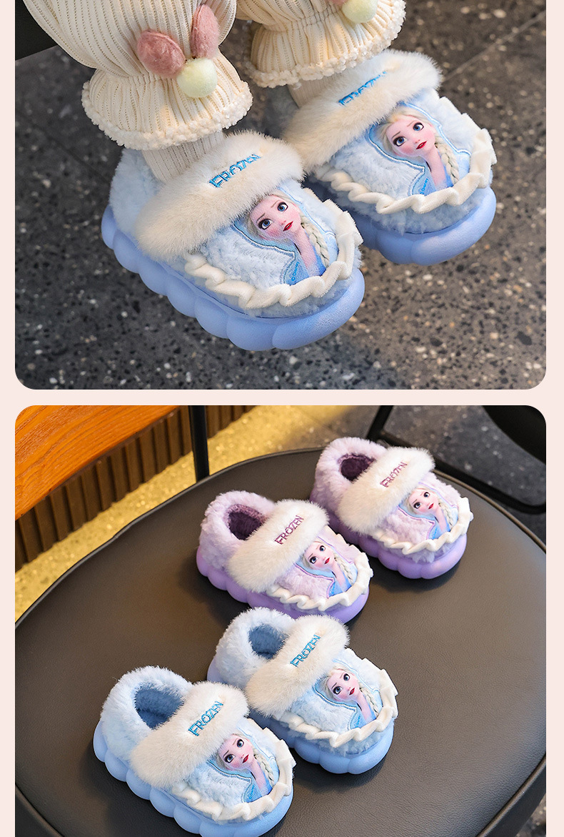 Princesa Elsa otoño y invierno bolsas de niños zapatos de tacones de algodón para niñas calentamiento y pelusa en casa zapatillas de algodón para niñas con suela gruesa