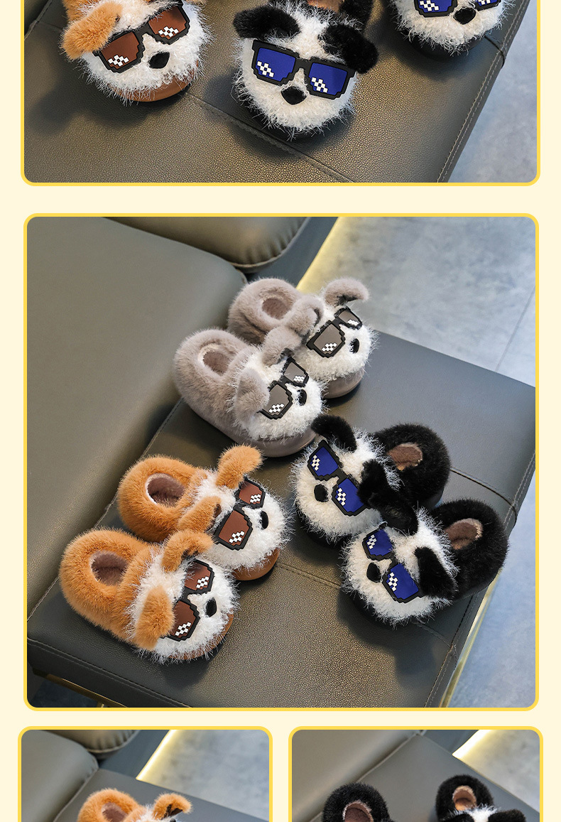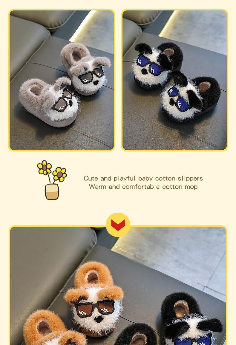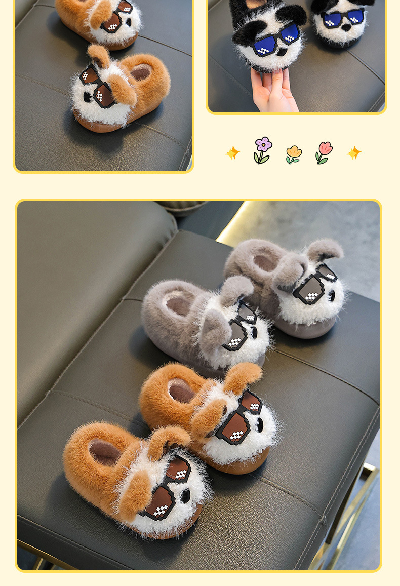 Otoño y invierno zapatillas de algodón para niños y niñas calientes y pelusa para padres e hijos, zapatos de algodón antideslizantes para cachorros