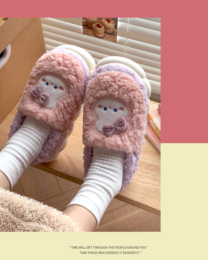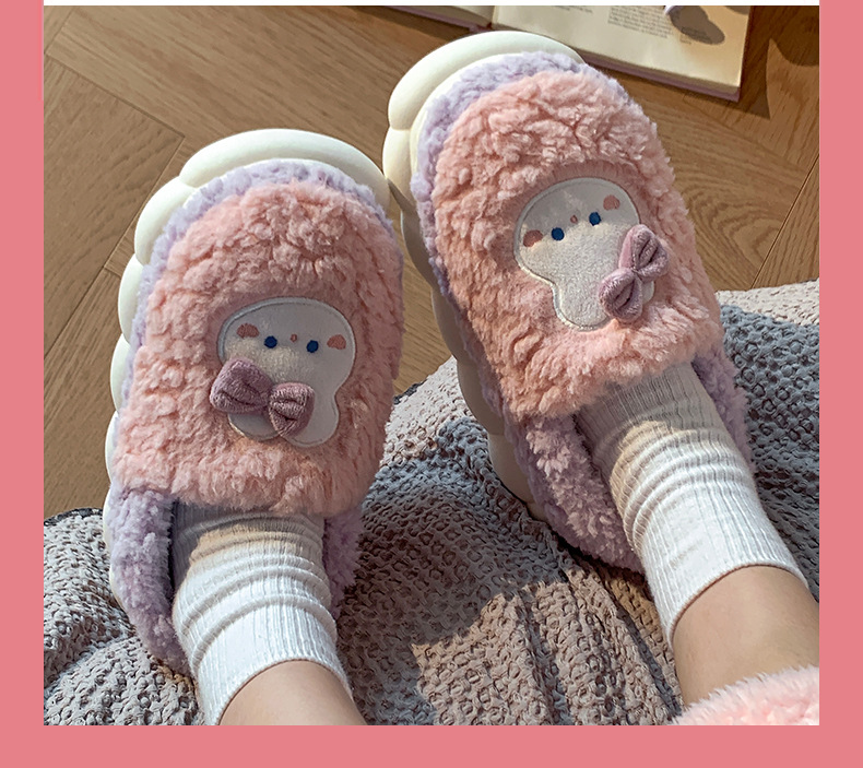 Zapatillas de algodón para mujeres Otoño e Invierno pareja hogar cálido forro polar peludo lindo fondo grueso antideslizante posparto confinamiento zapatos de algodón para hombres