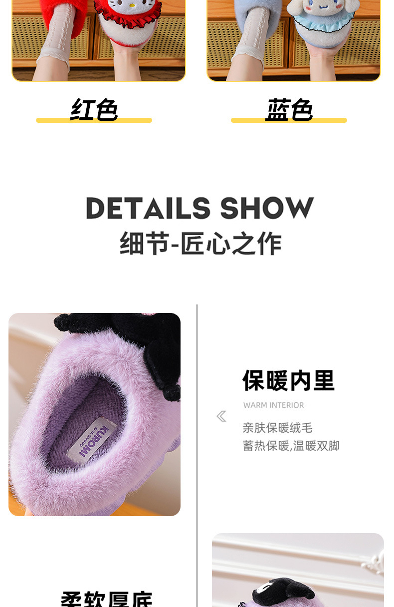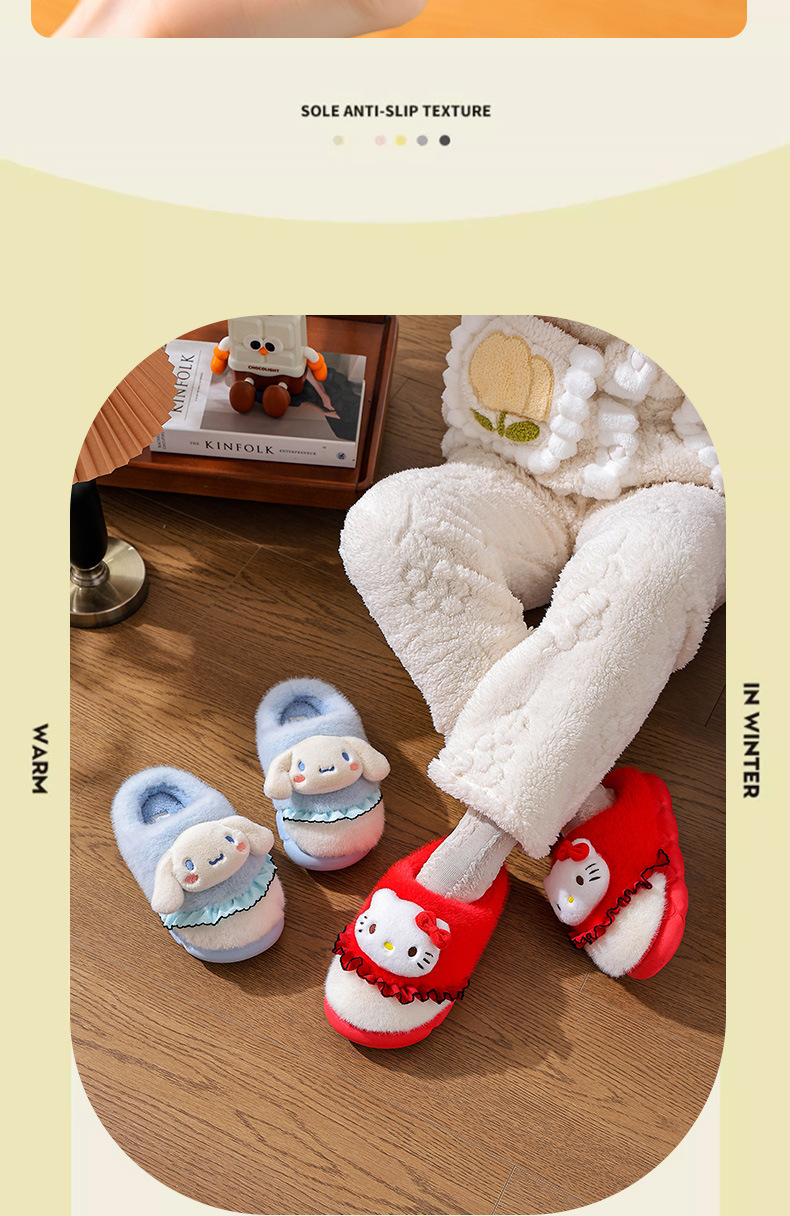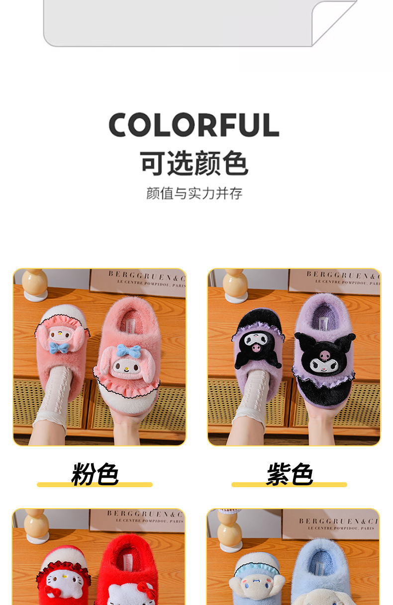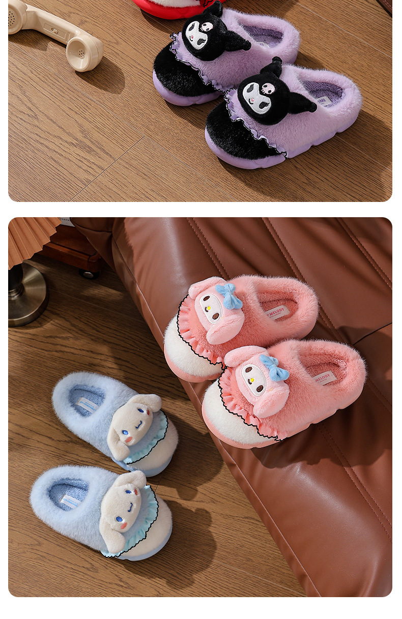 | Color | Zapatillas Colomi púrpura, zapatillas Melody rosa, zapatillas de perro de orejas azules, zapatillas de Kitty rojas, Colomi púrpura (talón de bolsa), Melody rosa (talón de bolsa), perro de orejas azules (talón de bolsa), Kitty roja (talón de bolsa) |