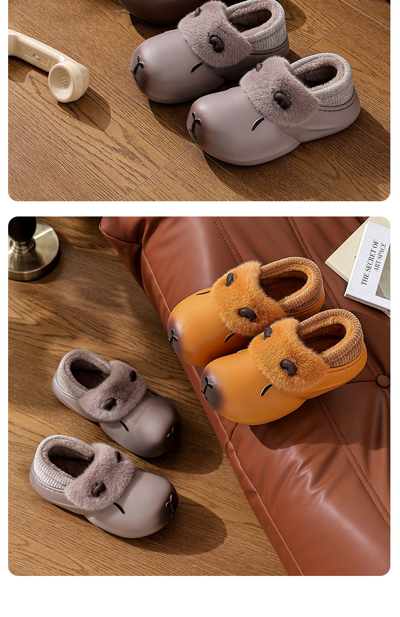 Kapibara bolsa zapatillas de algodón de tacones de invierno para mujeres 2025 nuevo tipo de veludo más grueso pisar excremento pareja de zapatillas de algodón en el hogar