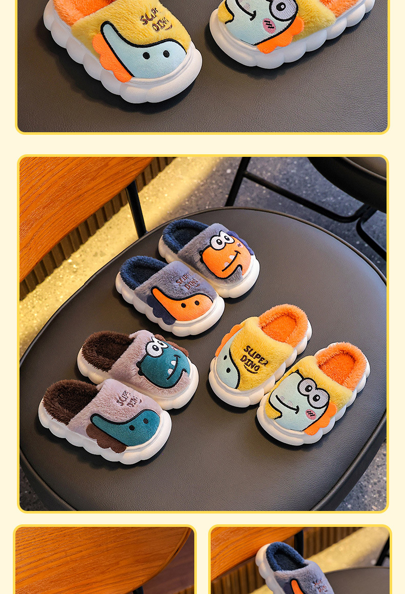 Bolsos de zapatos de algodón de invierno para niños, niños y niñas, zapatillas de algodón cálidas de dinosaurio de pelusa antideslizante para padres e hijos.